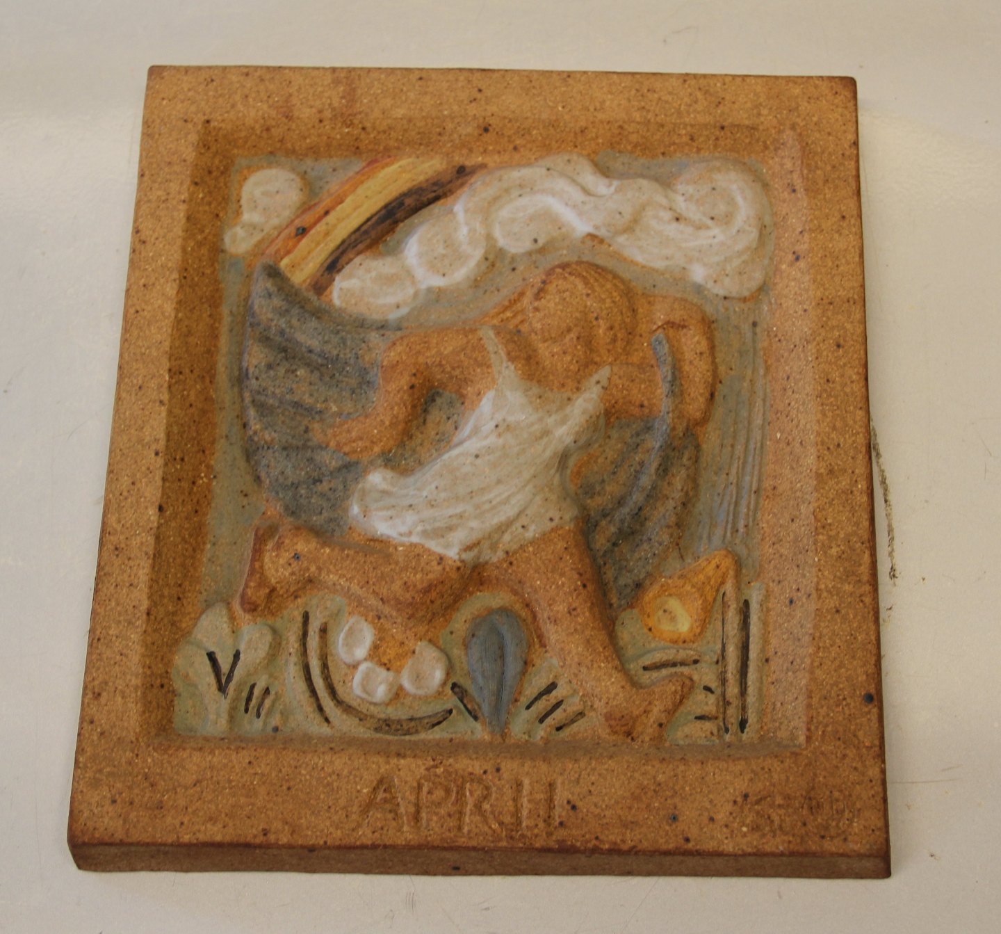 Beskrivelse: Bing & Grøndahl stentøj B&G 7104 April Relief 23,5 cm, Karl Otto Johansen I fin og hel stand Bing & Groendahl Månedsplatter