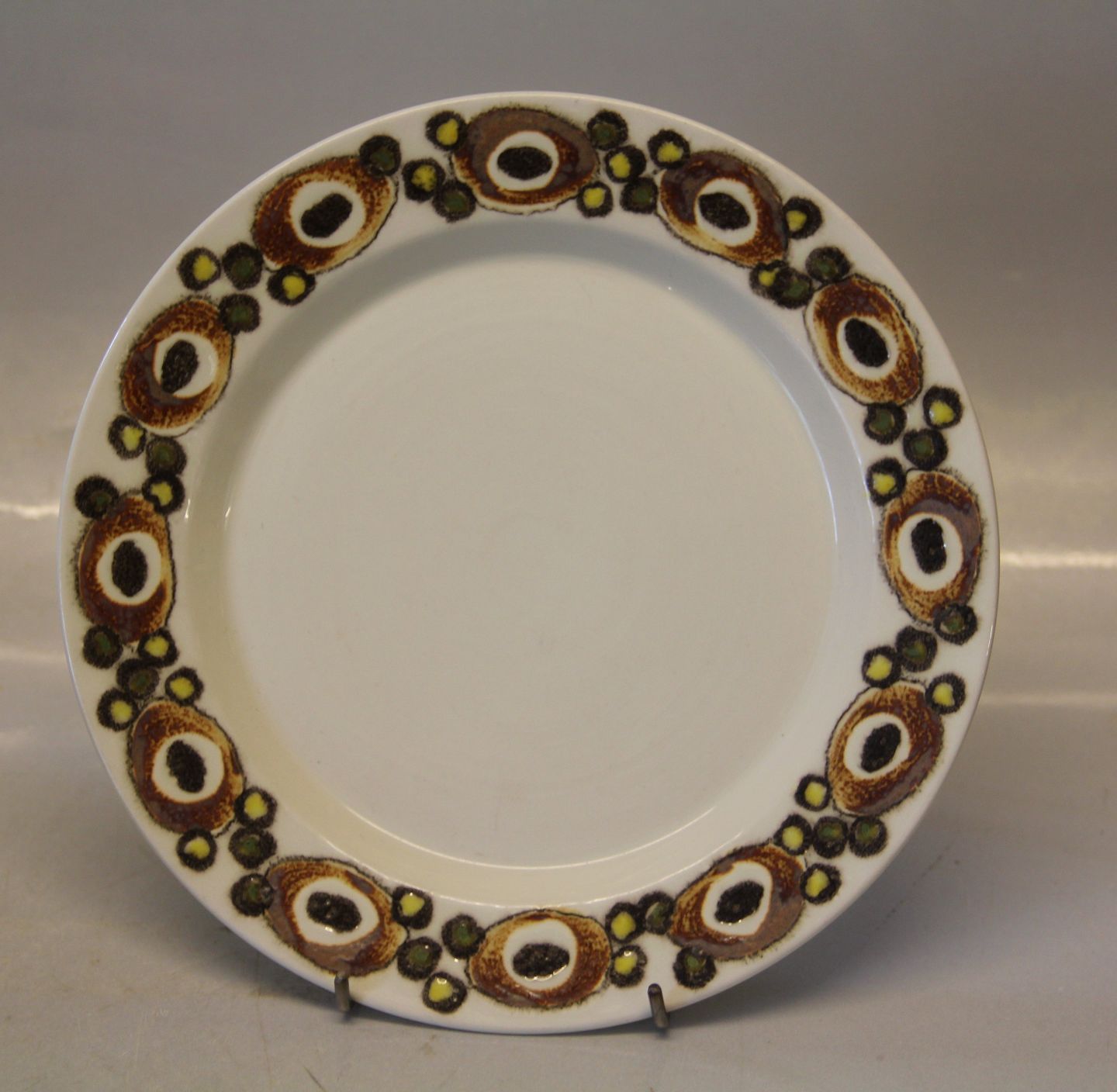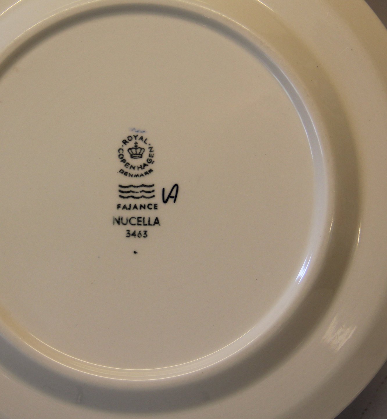 3463 Sidetallerken 19.7 cm Nucella Aluminia Fajance Nucella Stelform 1589 V.T.N af Inge-Lise Kofoed og Leif Lautrup-Larsen. 1966 Dekoration: Nucella af Ellen Malmer - blå eller brungule farver - fra 1969 Baca dekoration Royal Copenhagen Fajance