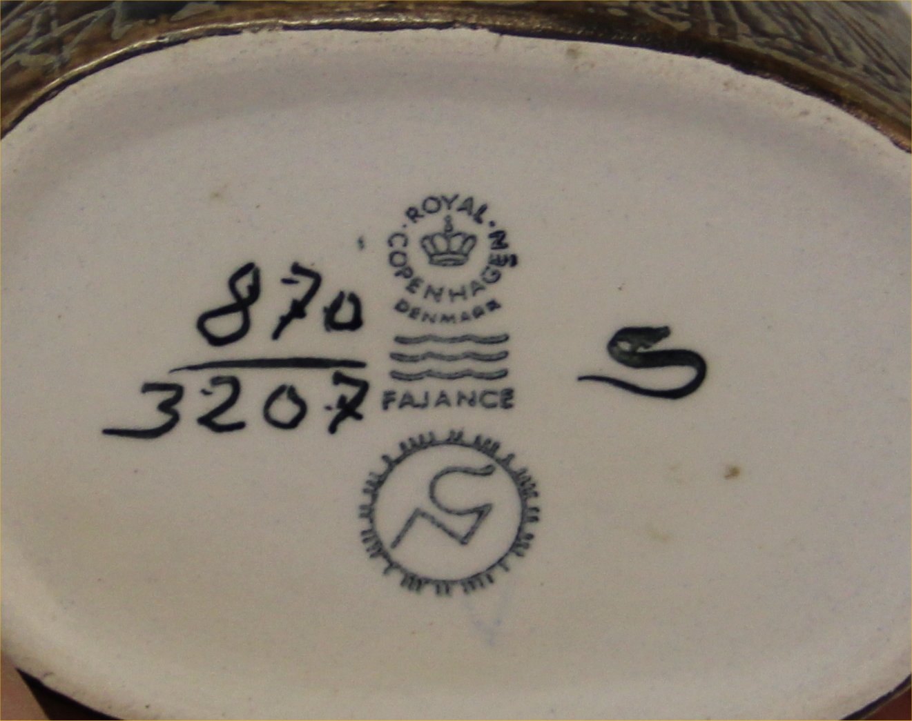 Beskrivelse: Royal Copenhagen Aluminia Baca fajance 870-3207 Brun Vase 13.5 cm Nils Thorson Baca 1972