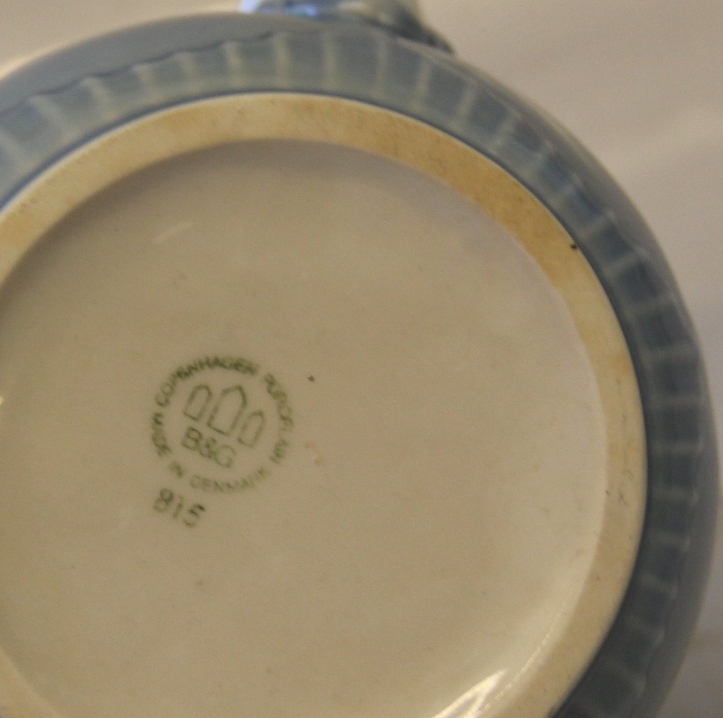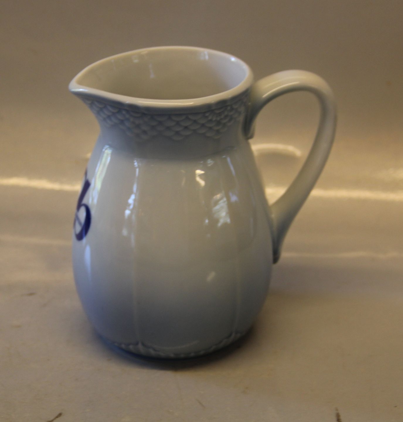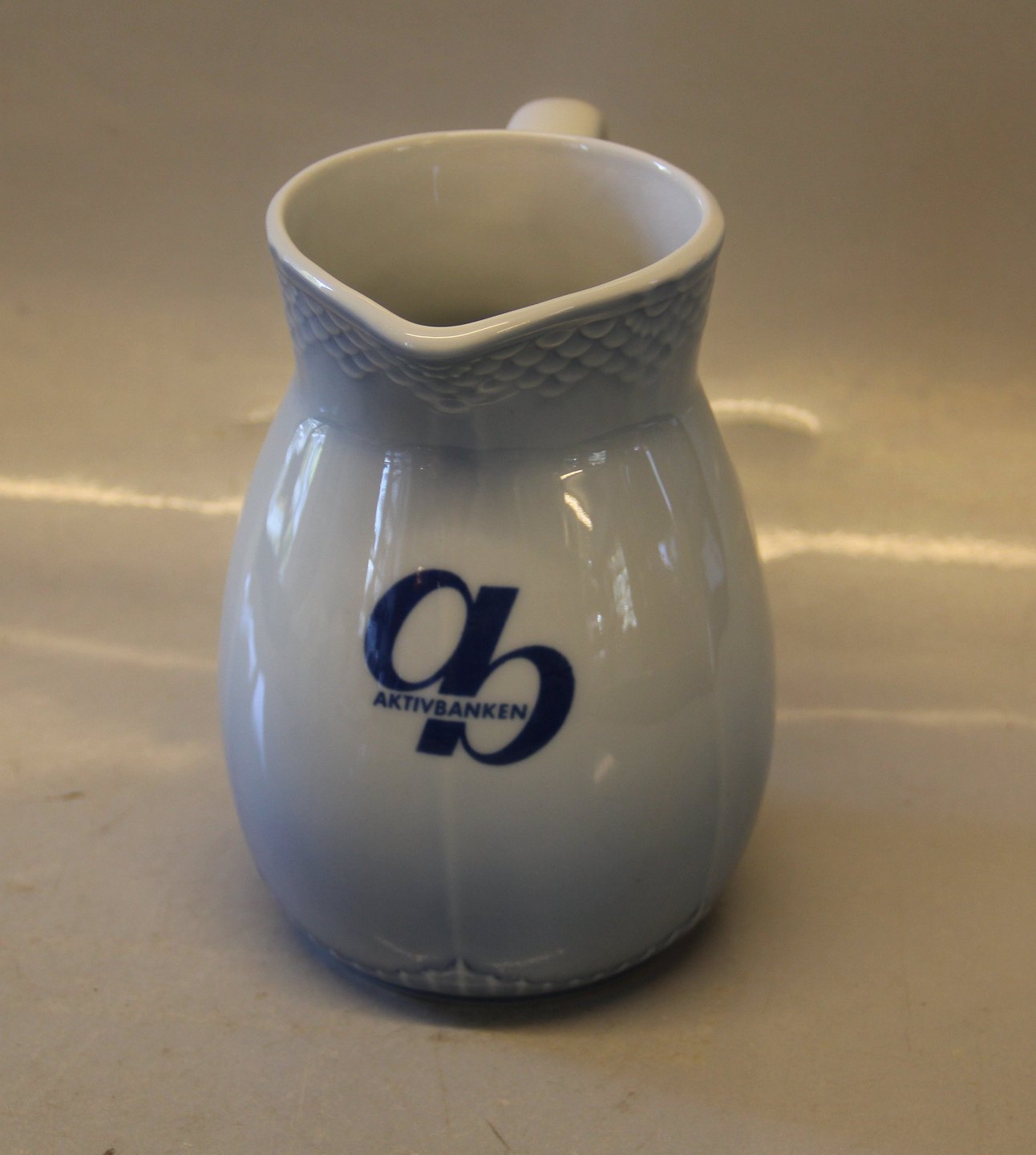 815 Mælkekande 15 cm Logo: Aktivbanken AB Bing & Grøndahl Jernporcelæn Blå tone med Logo - musling - kaldet