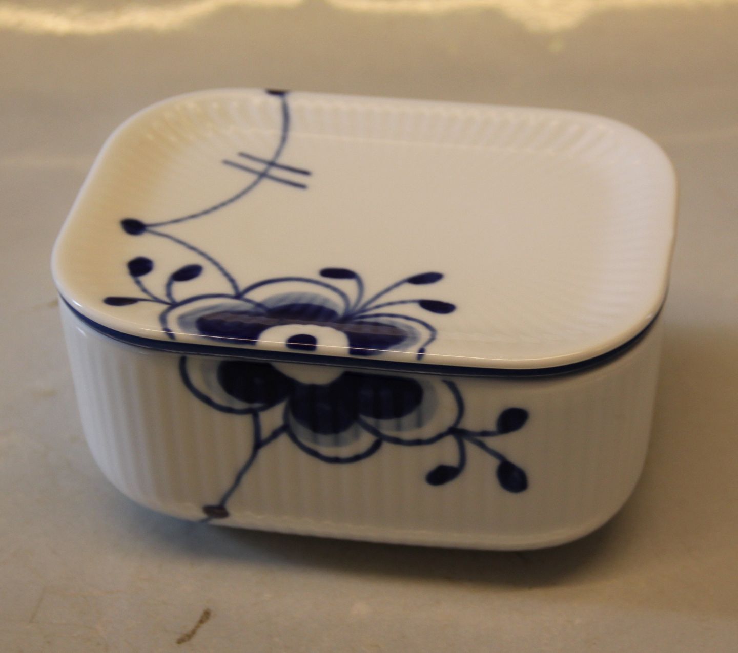 Royal Copenhagen MEGA Musselmalet riflet . Muselmalet I fin og hel stand. Passer godt sammen med andre blåmalede spise- og kaffestel Design: Karen Kjældgård-Larsen Megamussel Smørboks, Smørdåse Smørskål