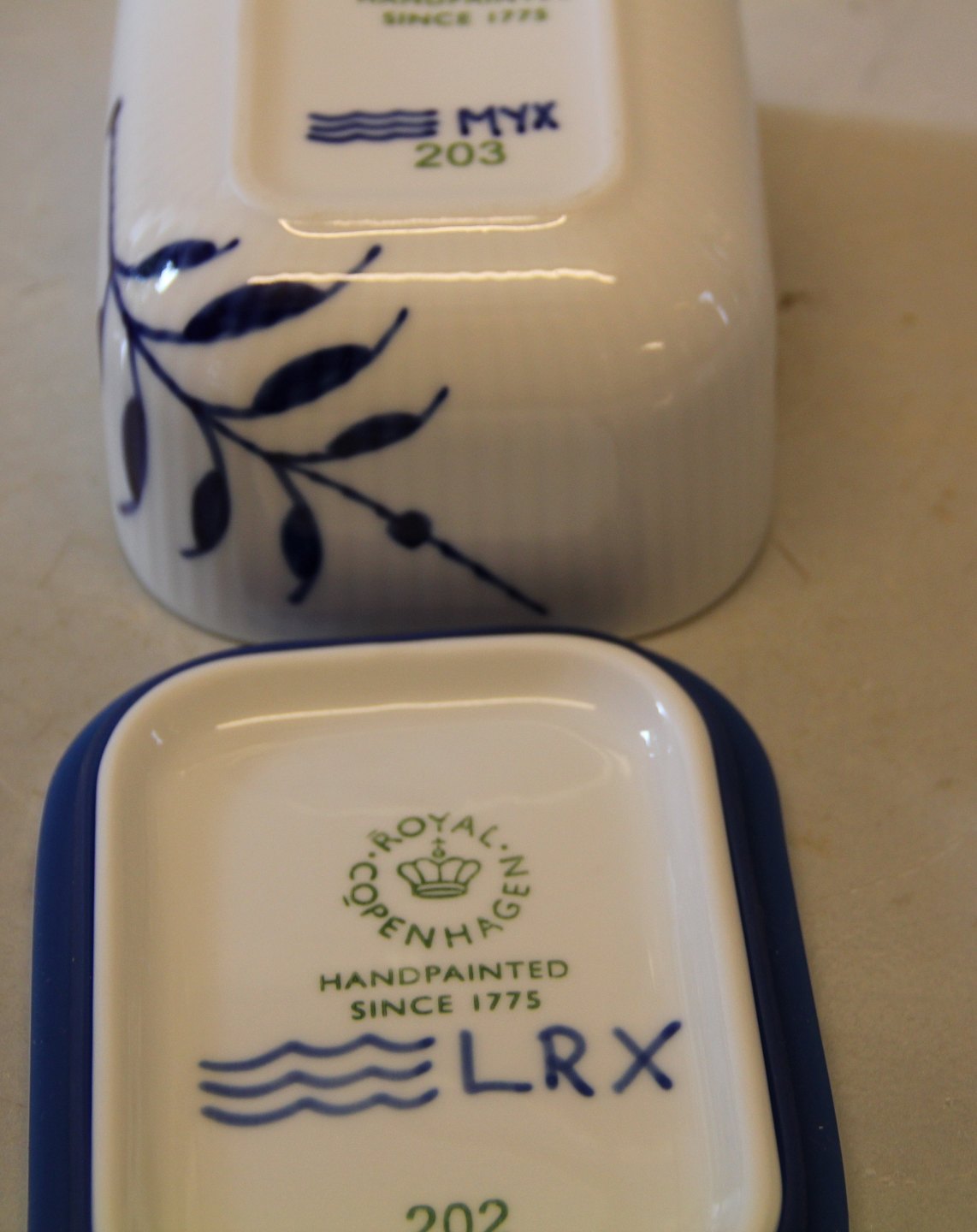 Kongelig Dansk Mega Musselmalet 203-1 Smørskål med låg, 6,8 cm x 13 cm (1016881) Blå Mega