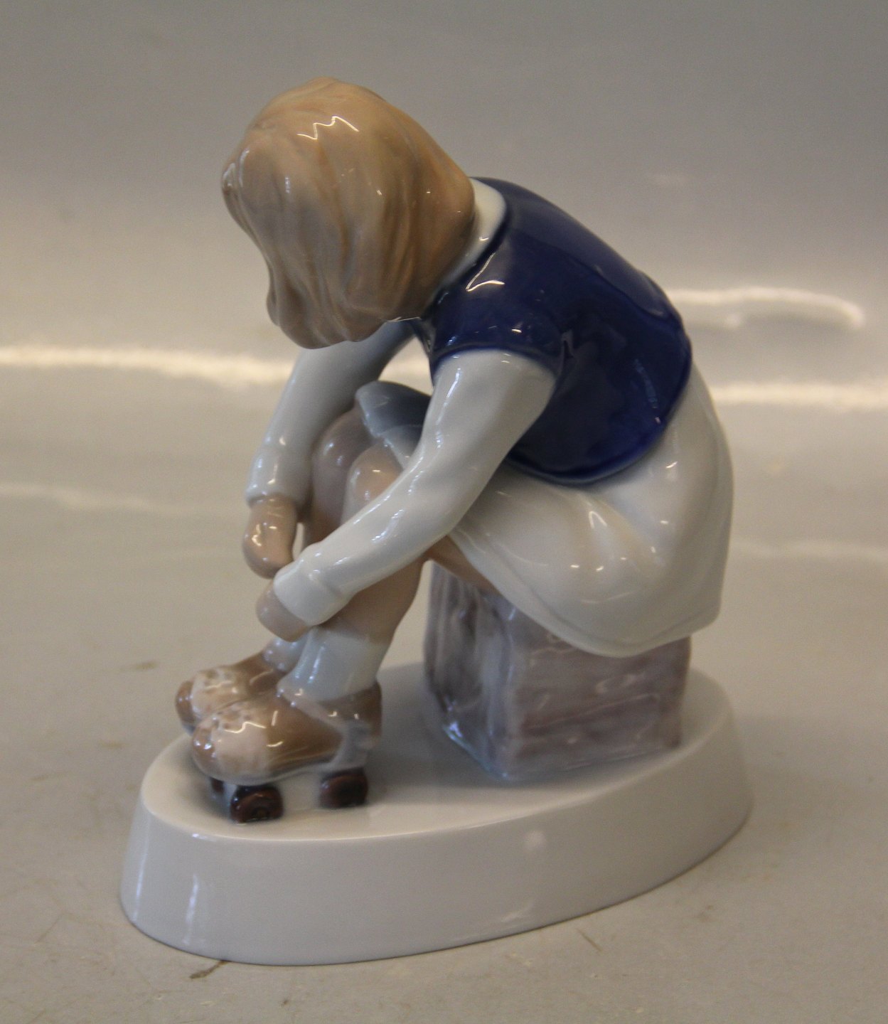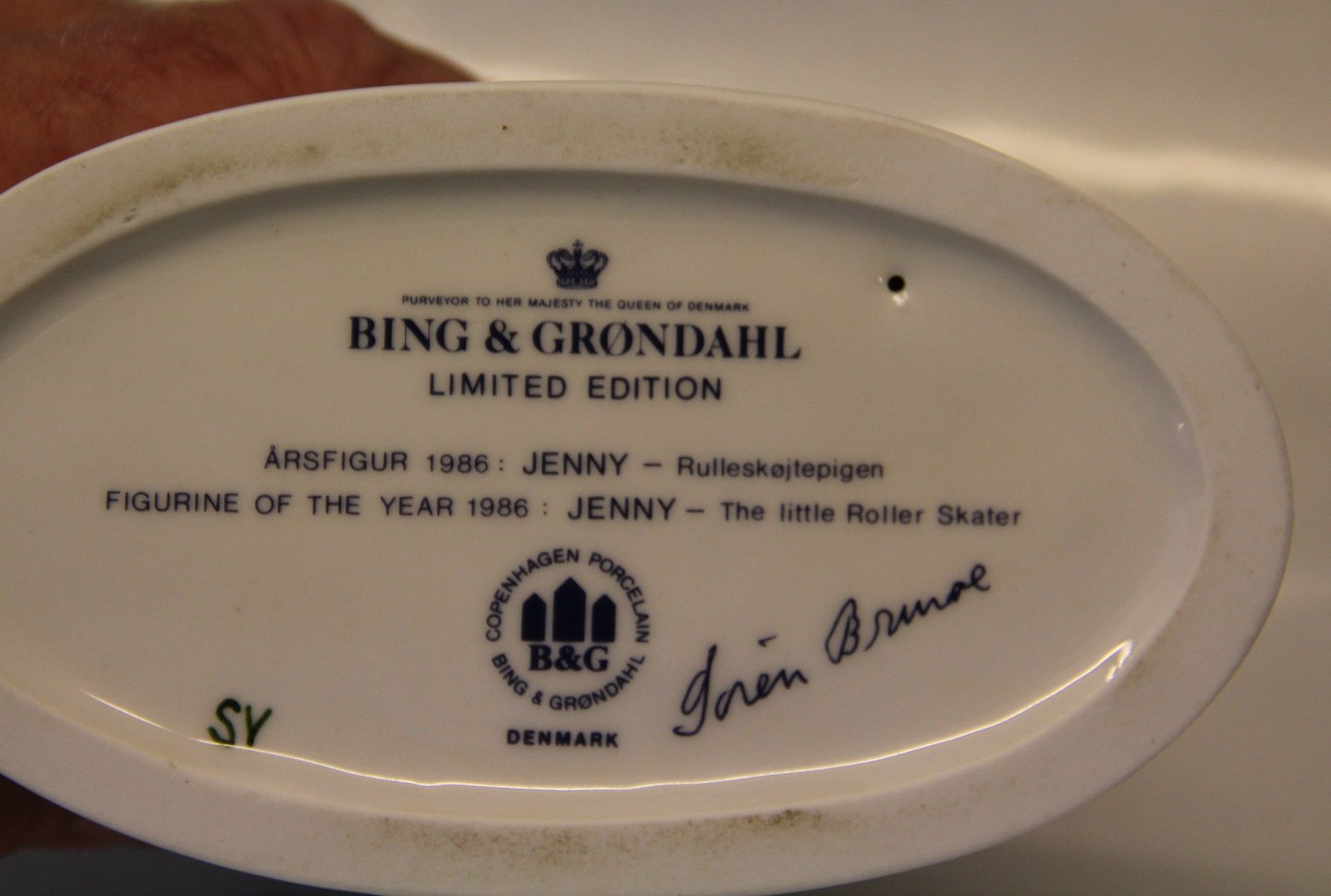 Beskrivelse: Bing & Grøndahl B&G 1986 Figurine of the Year 14 x 17 cm: Jenny - The little roller Skater Soren Brunoe I fin og hel stand.