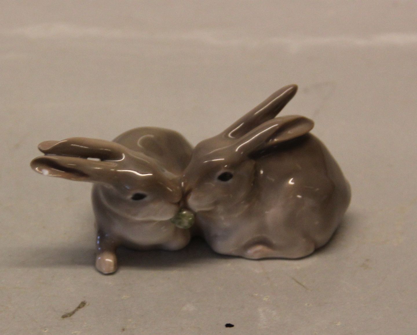 Royal Copenhagen figurine 0518 - 1252 RC Rabbits pair, brown 5 x 10 cm, Arnold Krog 1895 Color 1252