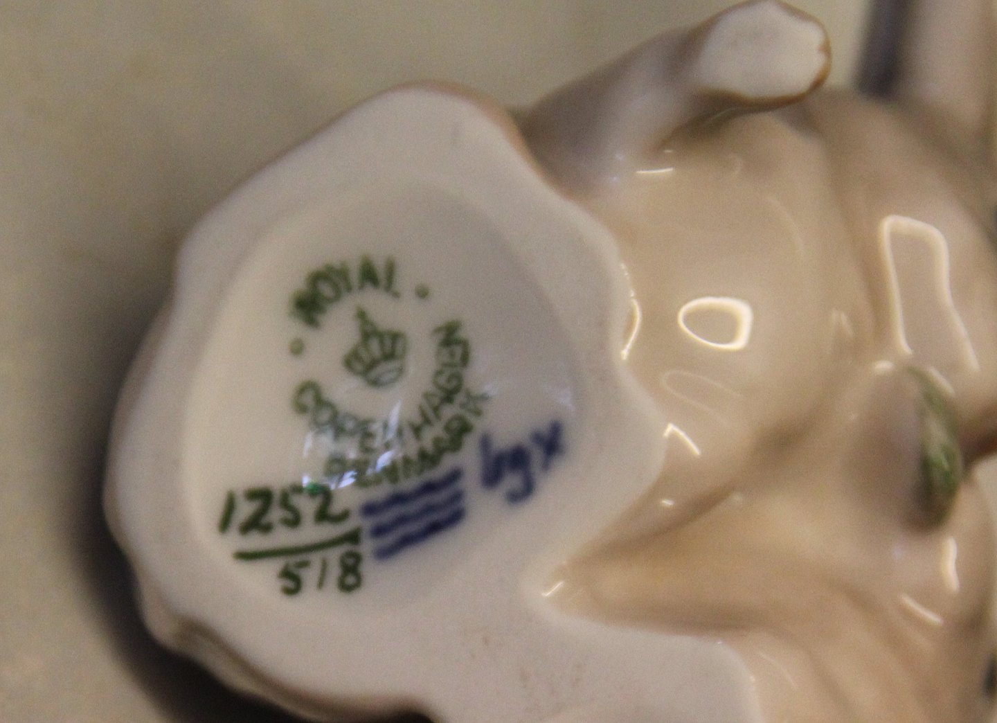 Description: Royal Copenhagen 0518 - 1252 RC Rabbits pair, brown 5 x 10 cm, Arnold Krog 1895 Color 1252