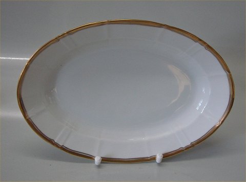 018 Ovalt fad 24 cm (318) Bing & Grøndahl Offenbach Hvidt kantet porcelæn med bred guldkant. Bing & Groendahl I hel og fin stand