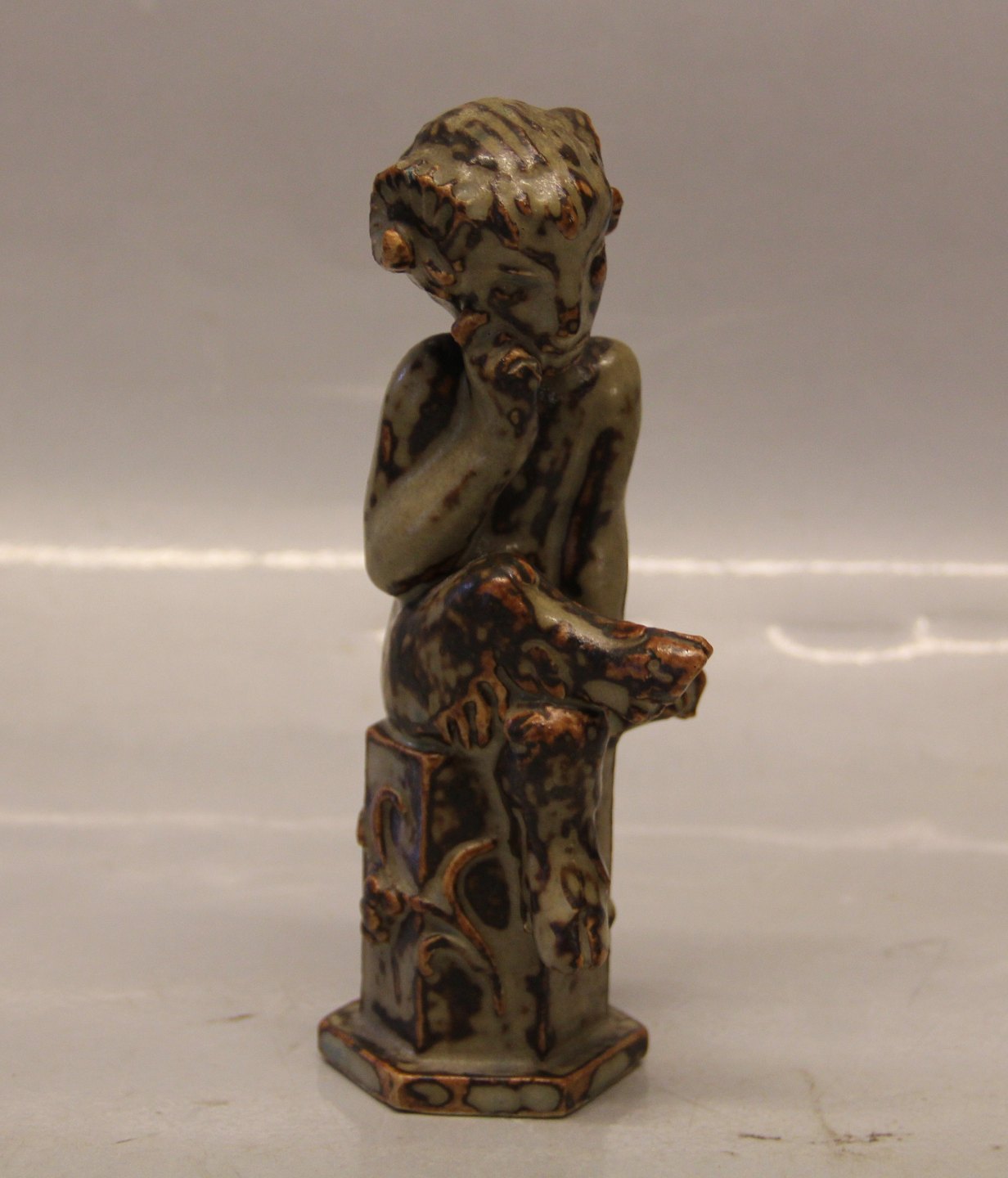 Beskrivelse: Arne Bang 1929 Satyr på klippe 26 cm Signeret AB