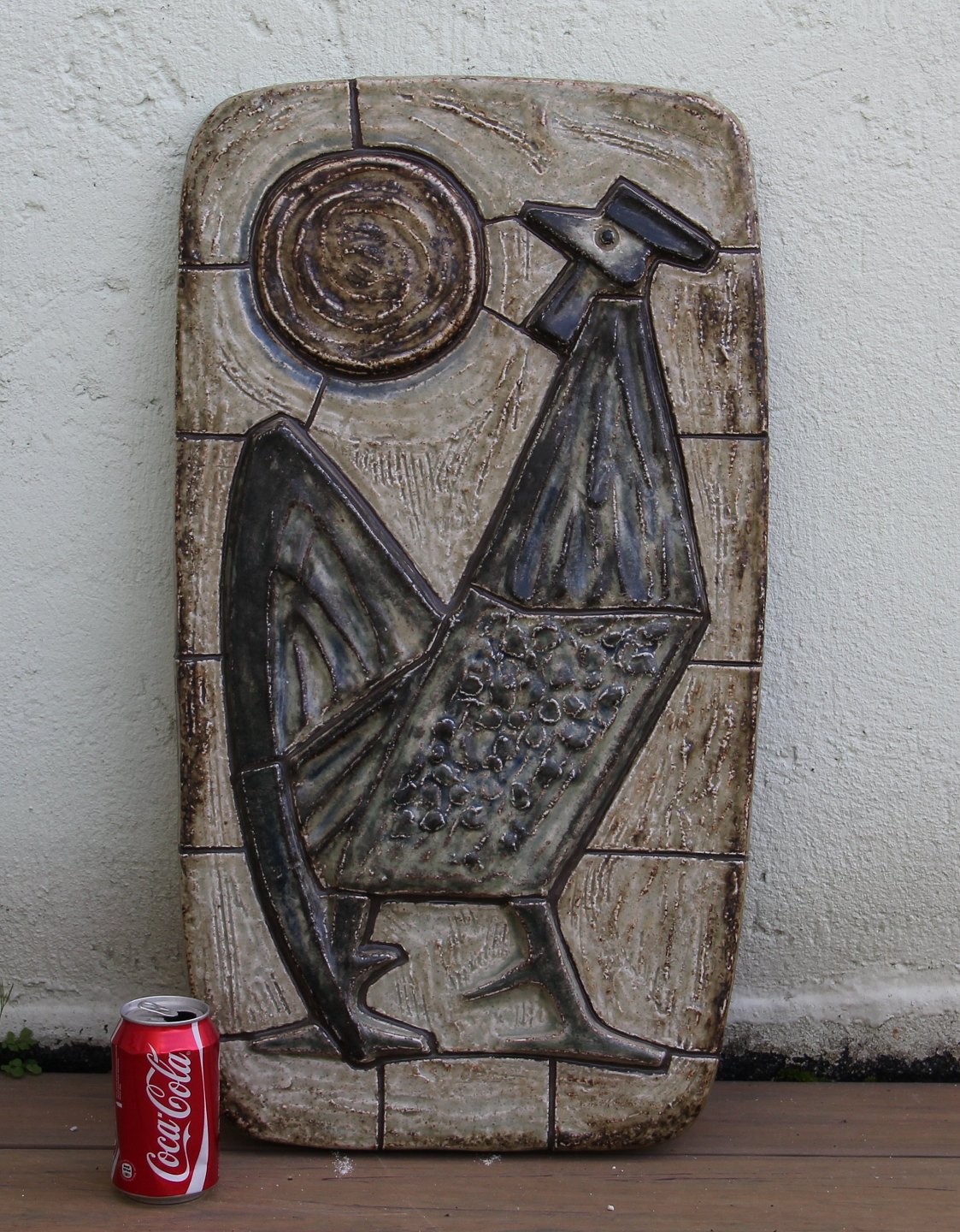 Beskrivelse: Royal Copenhagen Fugle stentøj Kgl. Relief Hanegal til morgensolen 66 x 38 cm JM Jørgen Mogensen I fin og hel stand fra ca 1962