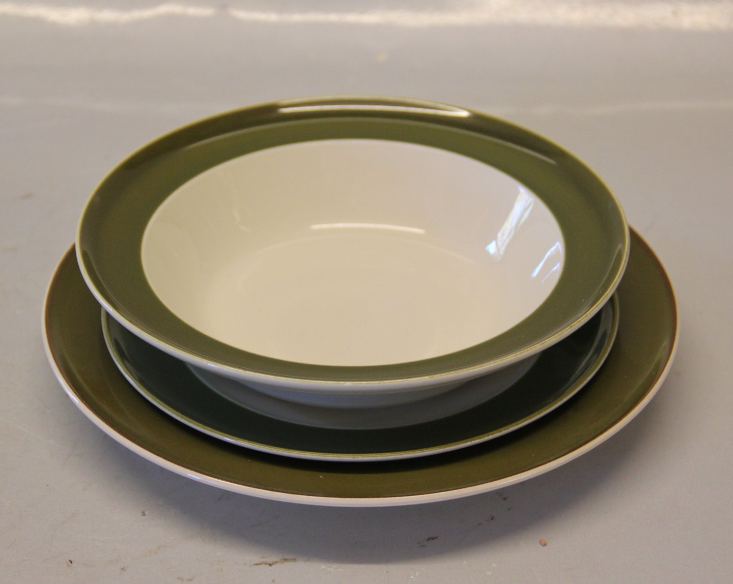 2787 Dyb tallerken / Grødskål 18 cm Royal Copenhagen Aluminia fajance Timiana (Grøn) 1960-1969 på spisestelstelform Prunella designet af arkitekt Magnus Stephensen 1958