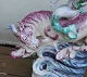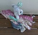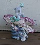 Bing & Grøndahl J. R. Gauguin: Figurgruppe af polykromt glaseret roche céramique / fajanace Havfrue (Søriddderen) ridende på "Hav" Tyr ca 65 x 68 cm I fin og hel stand.