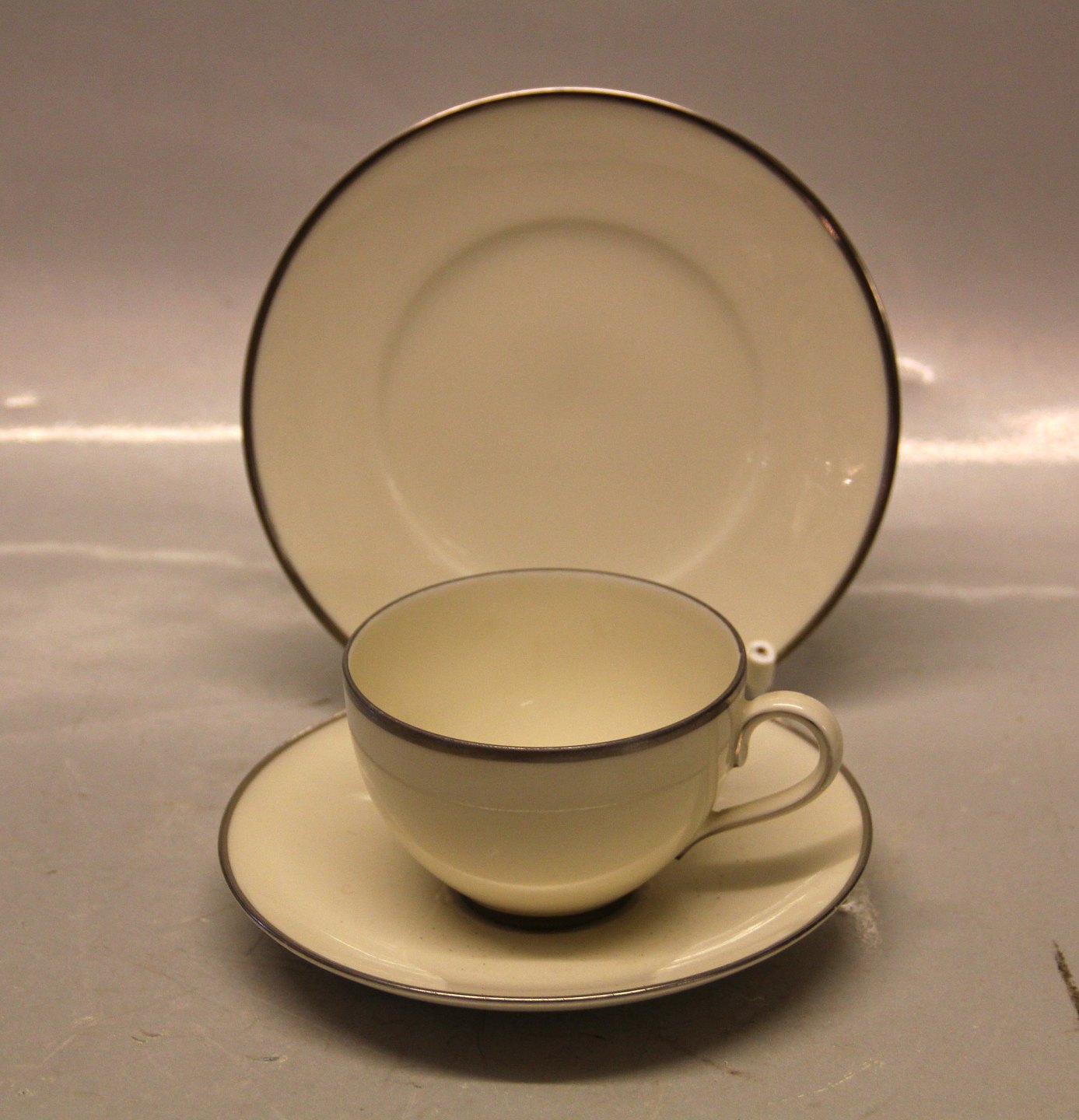 028 a Kagetallerken 15,5 cm (306) Alladin Bing & Grøndahl B&G : Creme porcelæn med platin kant, form 612 I fin og hel stand.