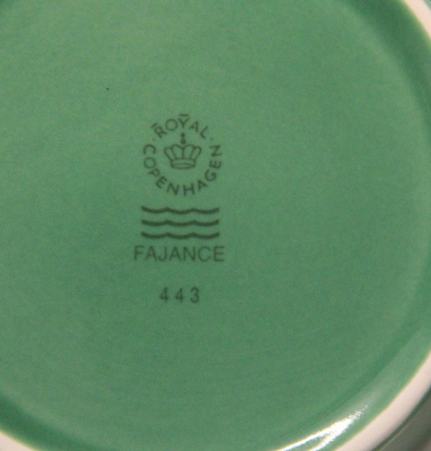 Beskrivelse: 443 Mørkegrøn kande, stor 1 l (1187443-16800) 16 cm Ursula stellet - det originale fra Royal Copenhagen fajance