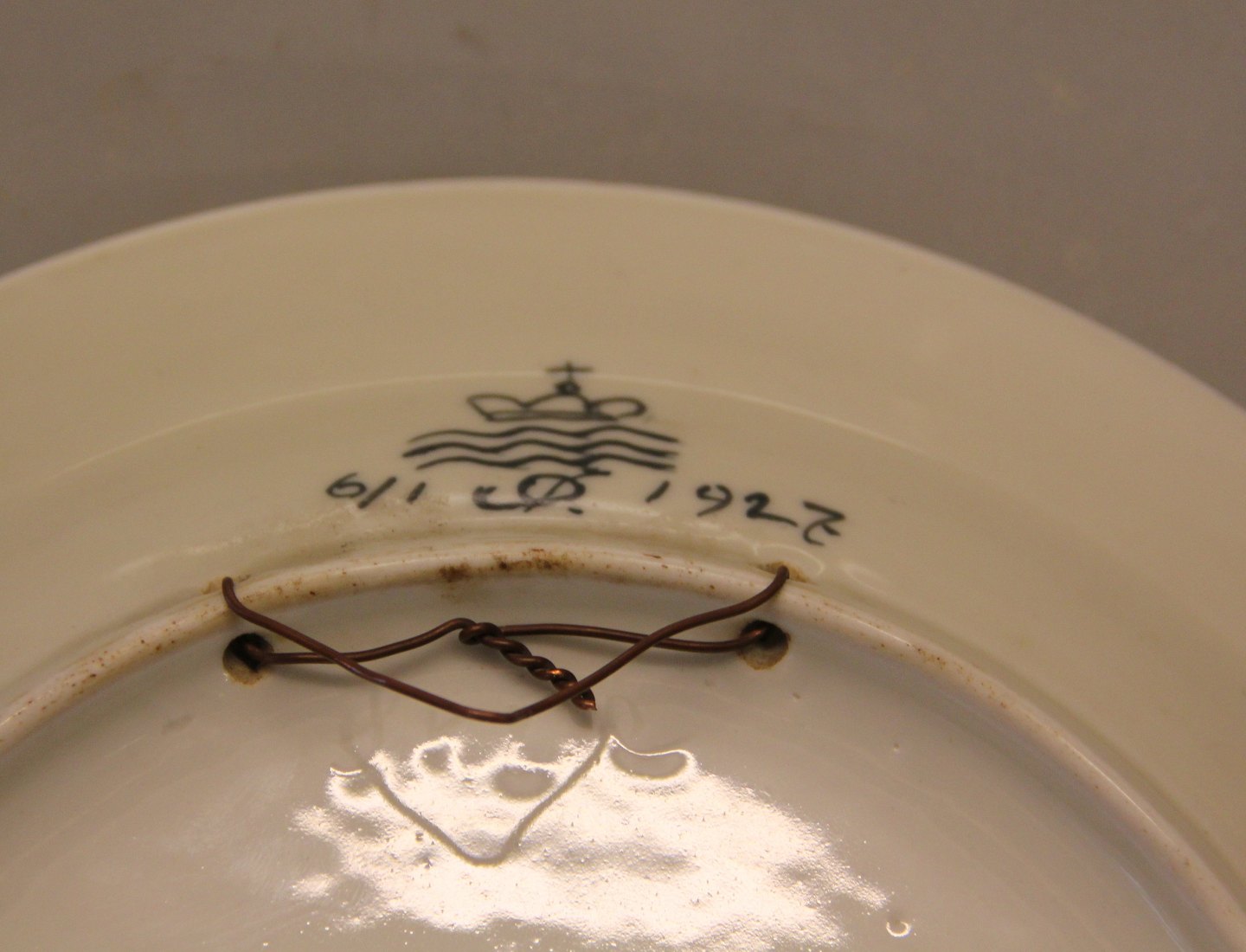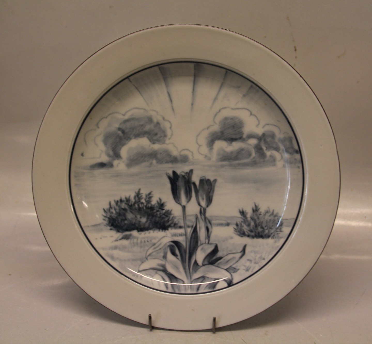 Kongelig Dansk Kgl Unika Vægplatte dekoreret med tulipaner 29.6 cm Signeret OJ Oluf Jensen 1927 6-1