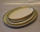 9722-1236 Platter, oval 3 x 21.5 X 27.5 CM Broager #1236 Kongelig porcelæn Kgl. spise- og kaffestel fra Den kongelige Porcelænsfabrik Grøn på creme porcelæn med guldkant. Af Torkild Olsen TO som også skabte Dagmar