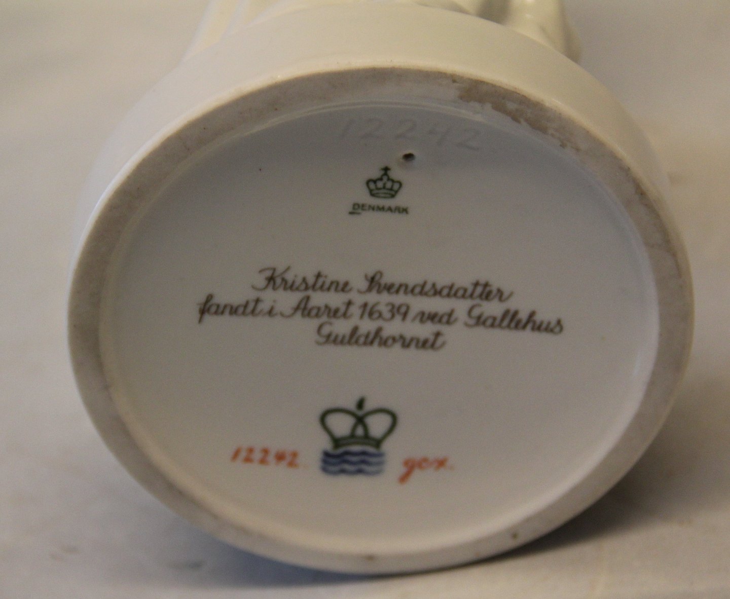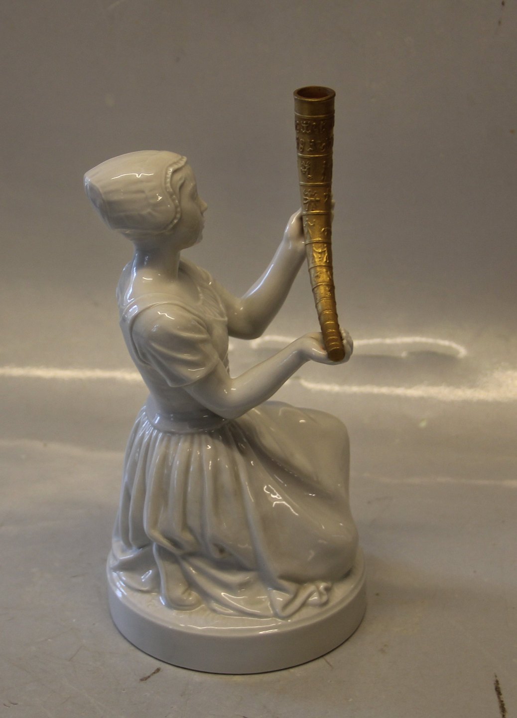 Kongelig Dansk 12242 Kgl. Pigen med guldhornene 22 cm. Design Holger Christensen Blanc de Chine Guldbemaling på hornet