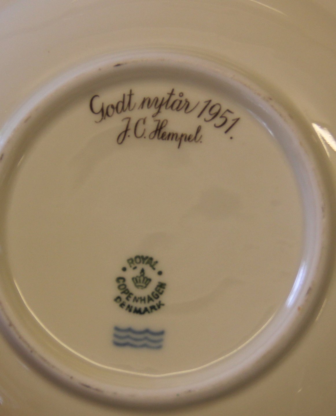 9483 Kagetallerken 17 cm Guldhornene spise- og kaffestel fra Den kongelige Porcelænsfabrik. Som Liselund på creme porcelæn med Guldhornene, kristtjørn og ciseleret guldkant. I fin og hel stand Design Thorkild Olsen. Flere dele med inskription fra I.C. Hempel 1940 - 1950.