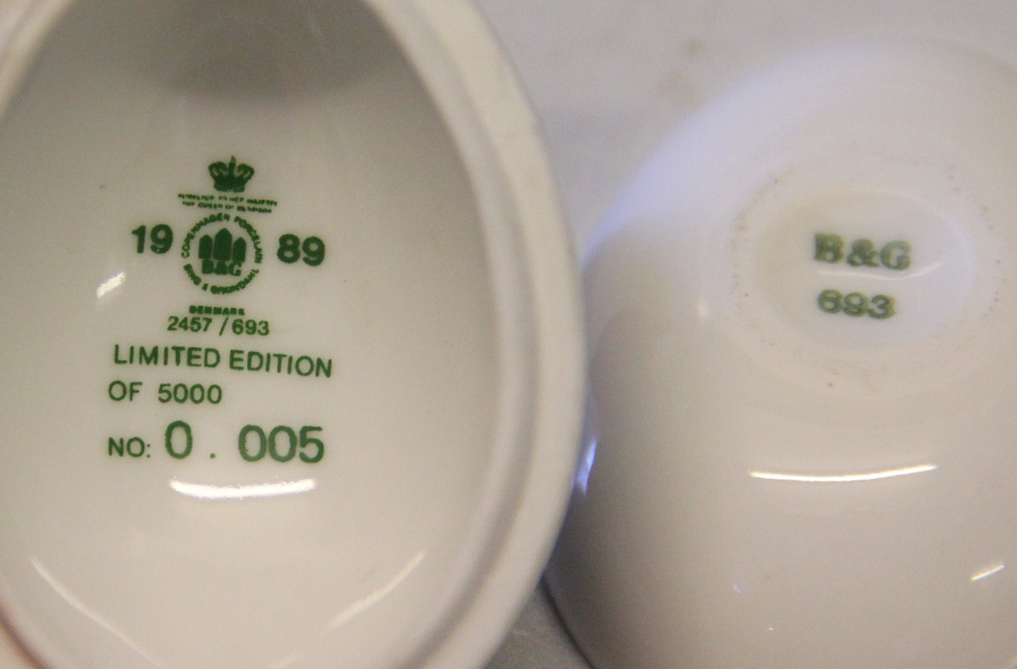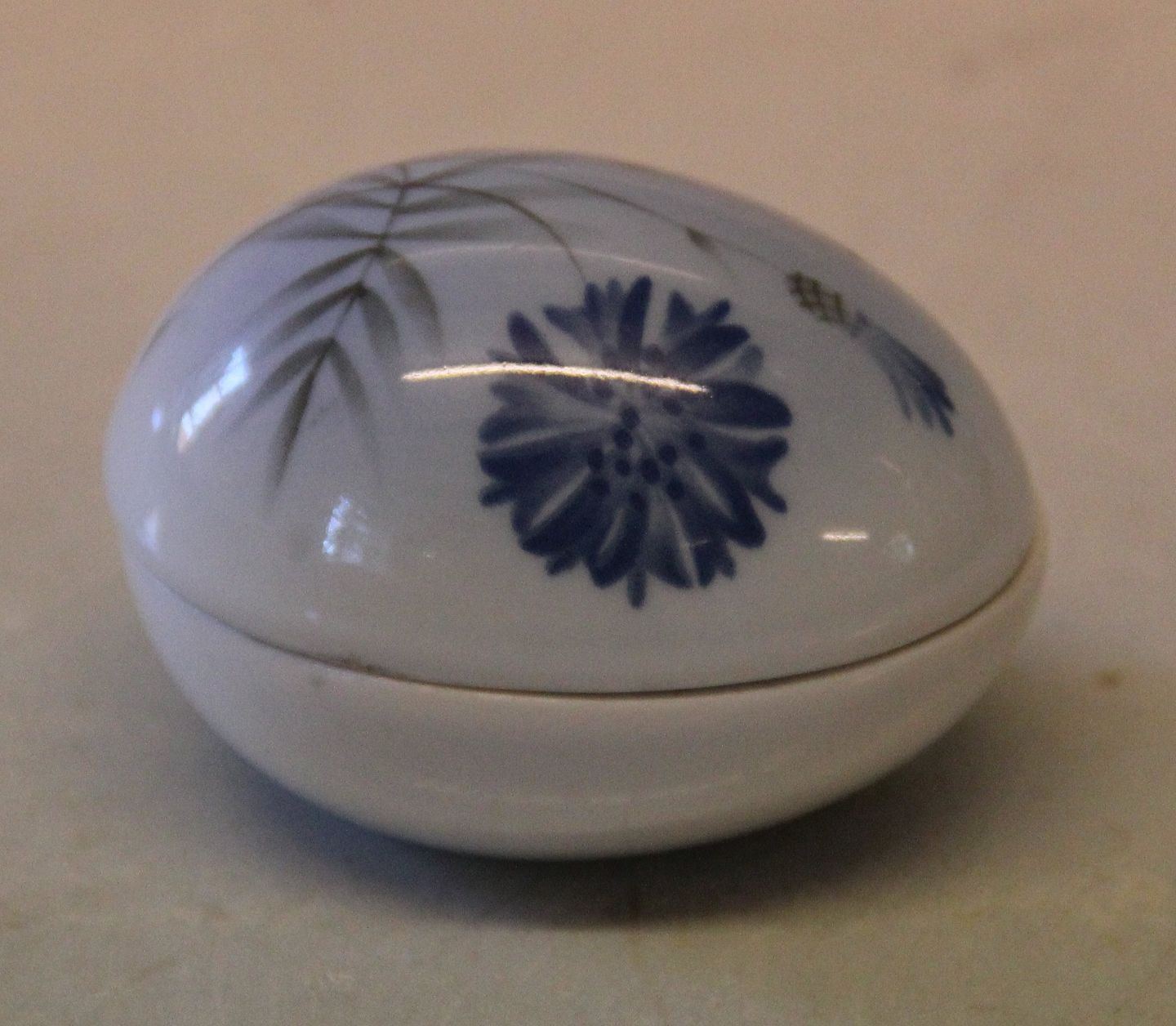Bing & Grøndahl B&G 2457-693 Årsæg - påskeæg 1989 Kornblomst (Demeter) 4 x 6 cm Limited Edition # 5 af 5000 Pilleæske