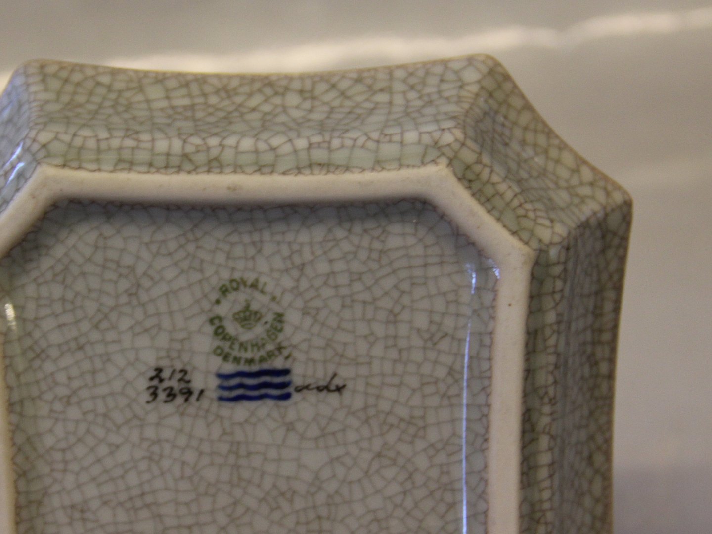 Beskrivelse: 212-3391 Kgl. Orange rektangulært fad 17 x 12 cm Kgl. Craquelé fra Royal Copenhagen I hel og fin stand
