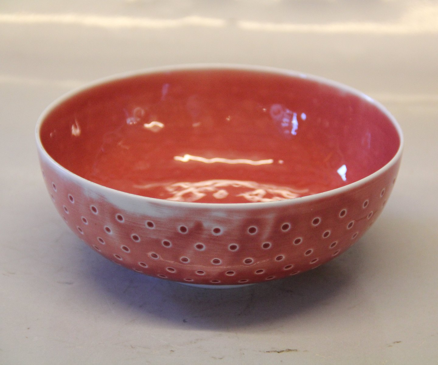 Kongelig Dansk 3603 Kgl. Skål 6 x 16 cm rødlig glasur i relief TO Thorkild Olsen
