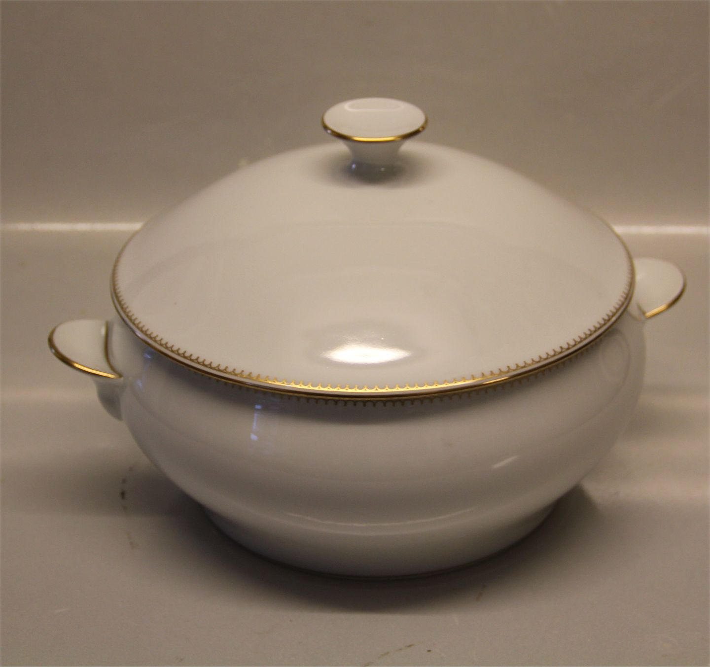 B&G Menuet: Hvidt porcelæn, takket guldkant, hvid, form 601 Bing & Grøndahl 005 Lågfad 1,5 l. (512)