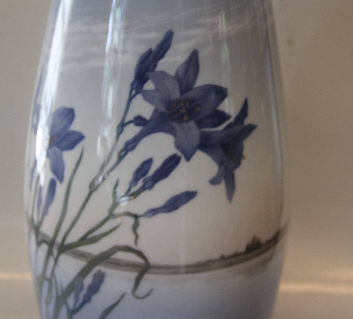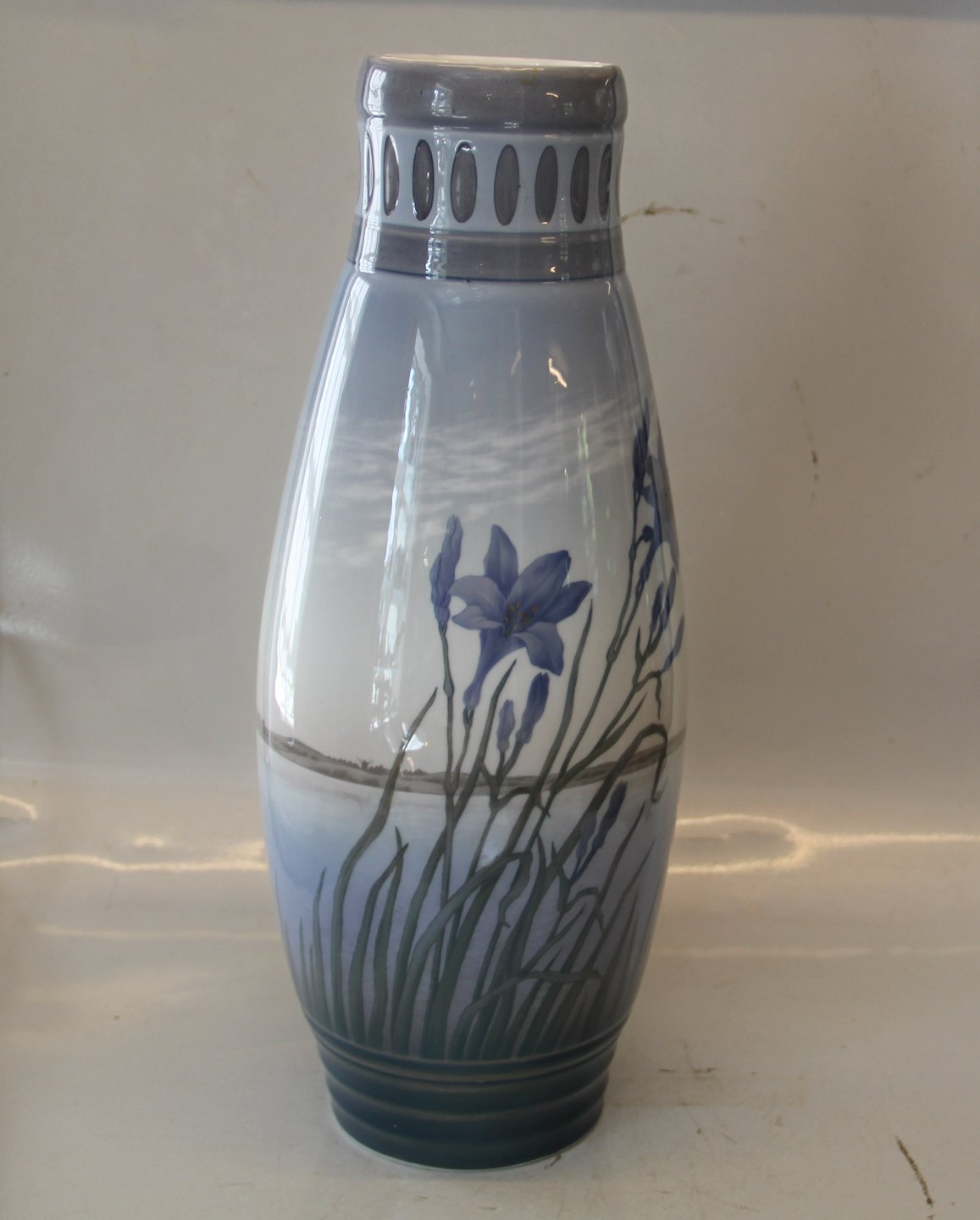 Kongelig Dansk 354 Kgl Vase 42 cm Blå Iris ved vandkanten Signeret i Monogram AM? 1908