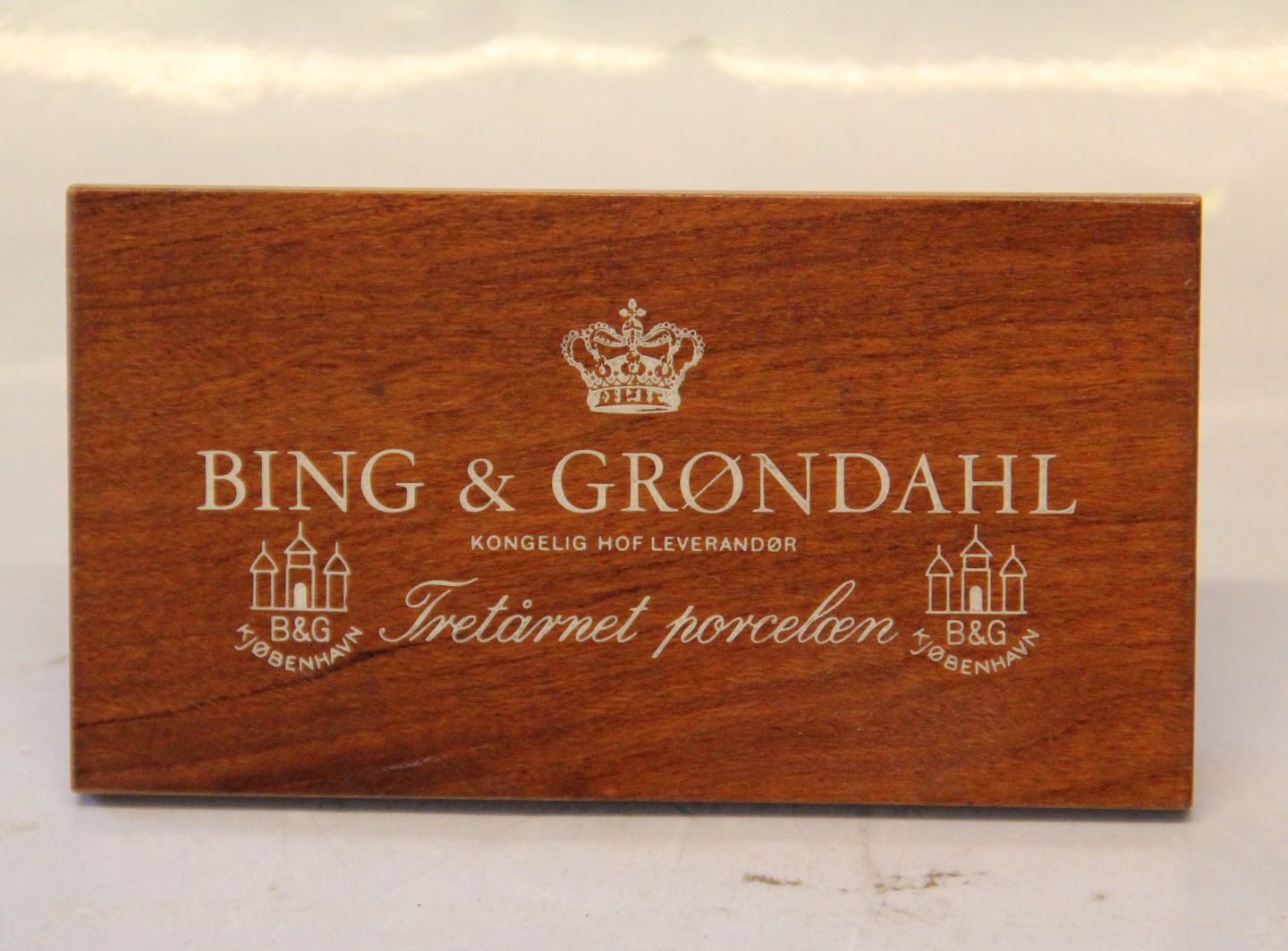 : Bing & Grøndahl Træskilt 7 x 13 cm Forhandlerskilt