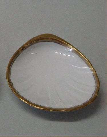 200 Kuvert muslingeskål 8,8 cm (330) Bing & Grøndahl Offenbach Hvidt kantet porcelæn med bred guldkant.Bing & Groendahl I hel og fin stand