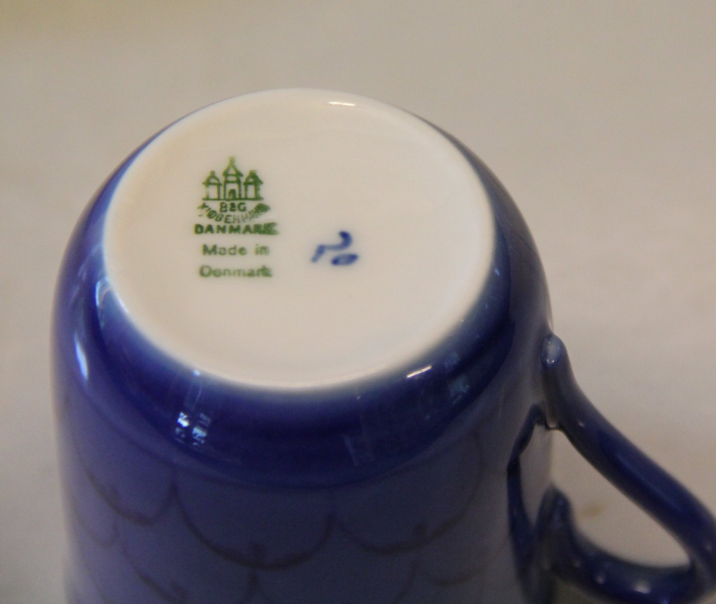 BLÅ Bing & Grøndahl 106 "Høj" 6.1 cm espresso kop (461) og 108 b underkop 12 cm