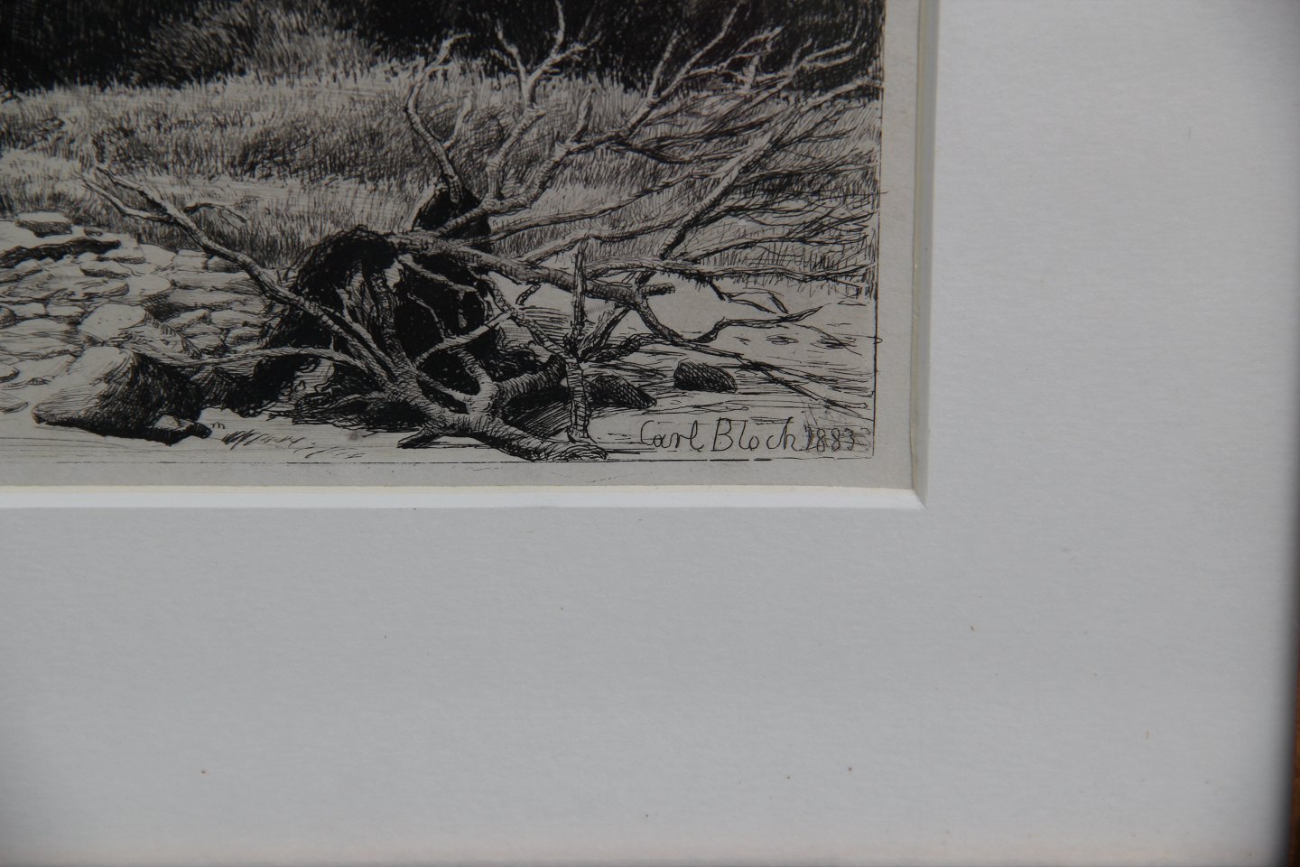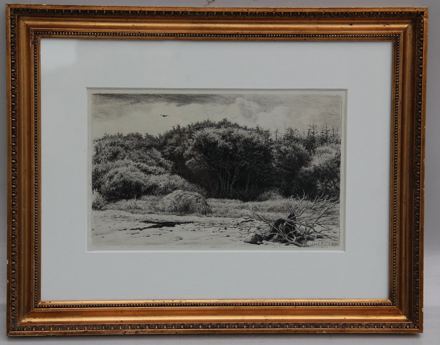 Radering Carl Bloch 1883 Landskab 34.5 x 44.5 cm inklusiv ramme