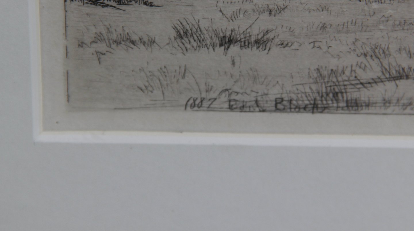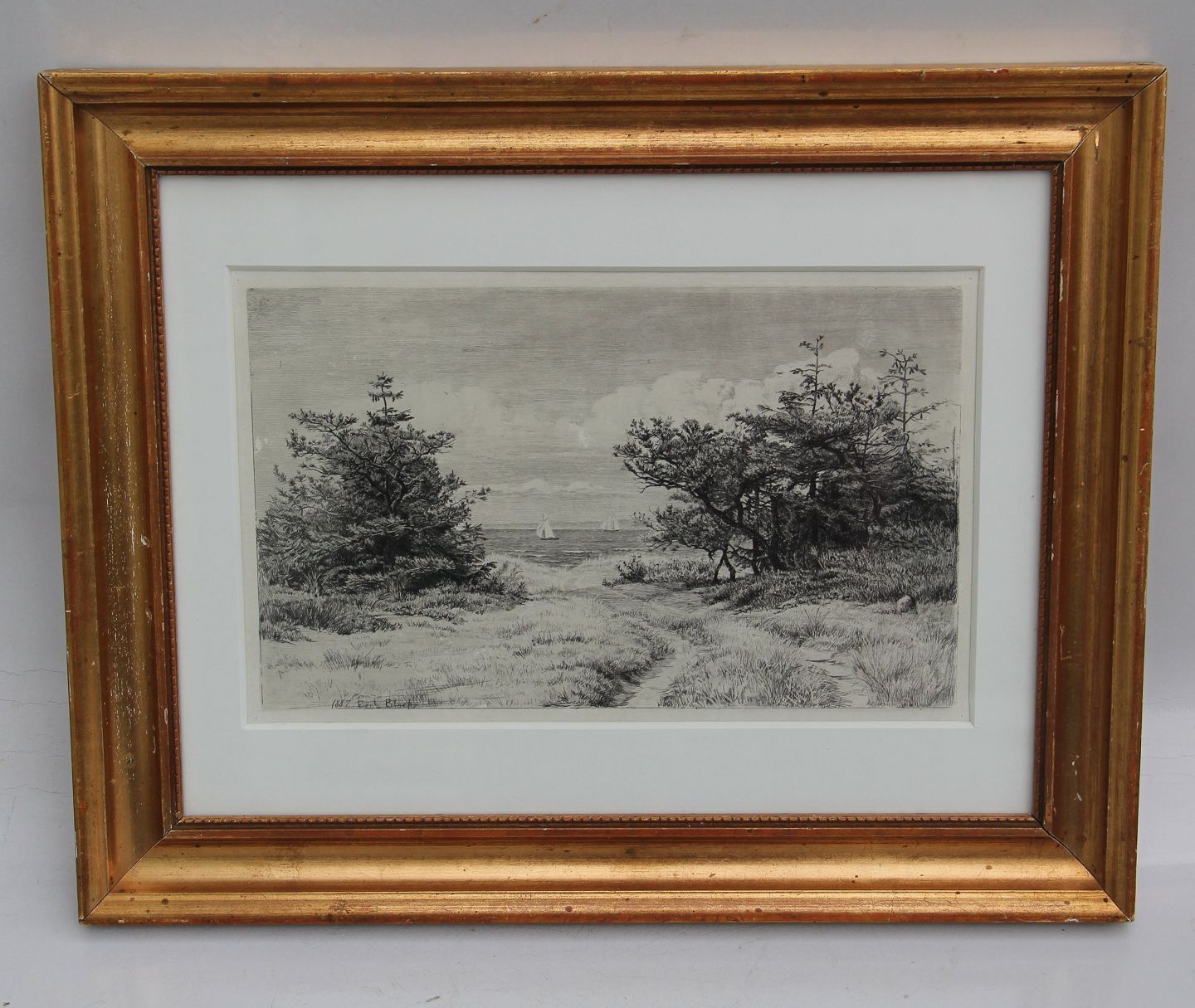 Radering: Carl Bloch 1887 Hav landskab ca 31 x 39 cm inklusiv ramme