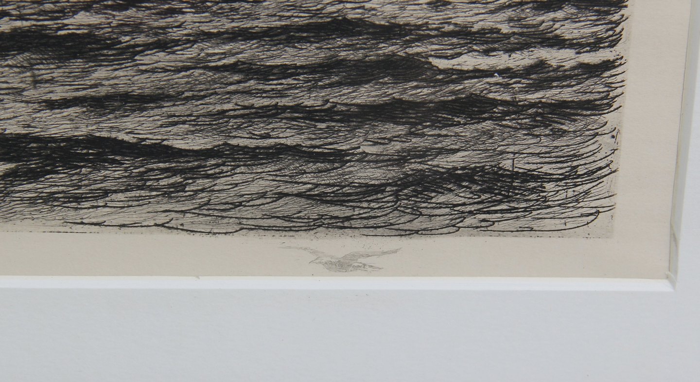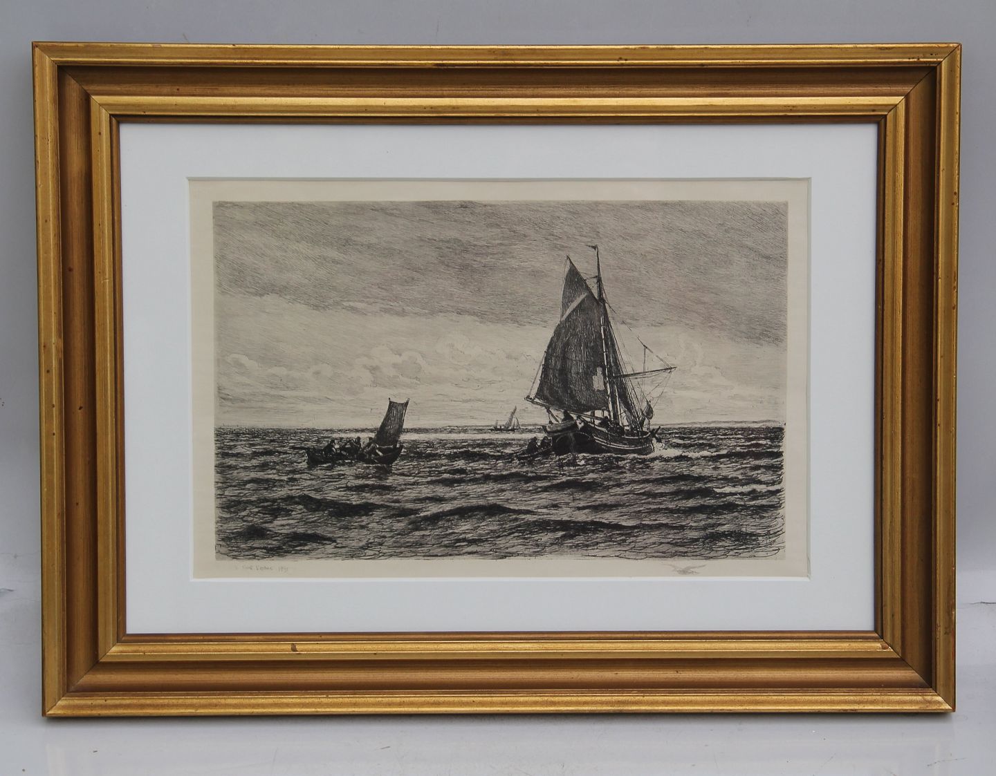 Radering: Carl Locher 1881 Marine 46 x 41 cm inklusiv guldramme