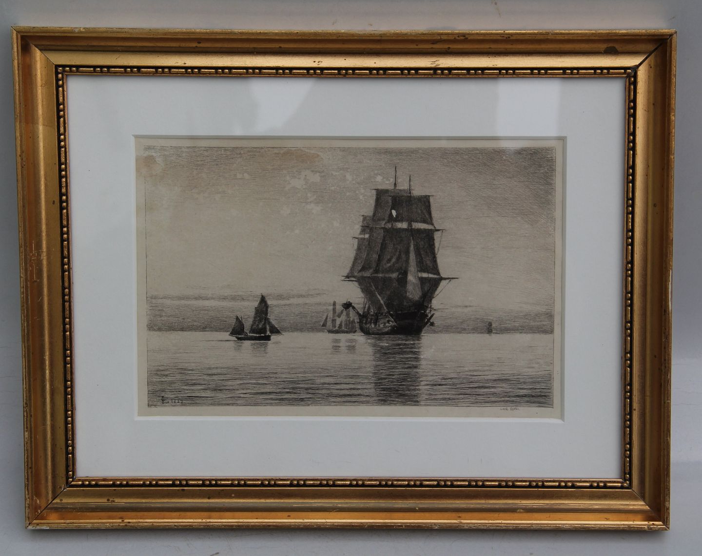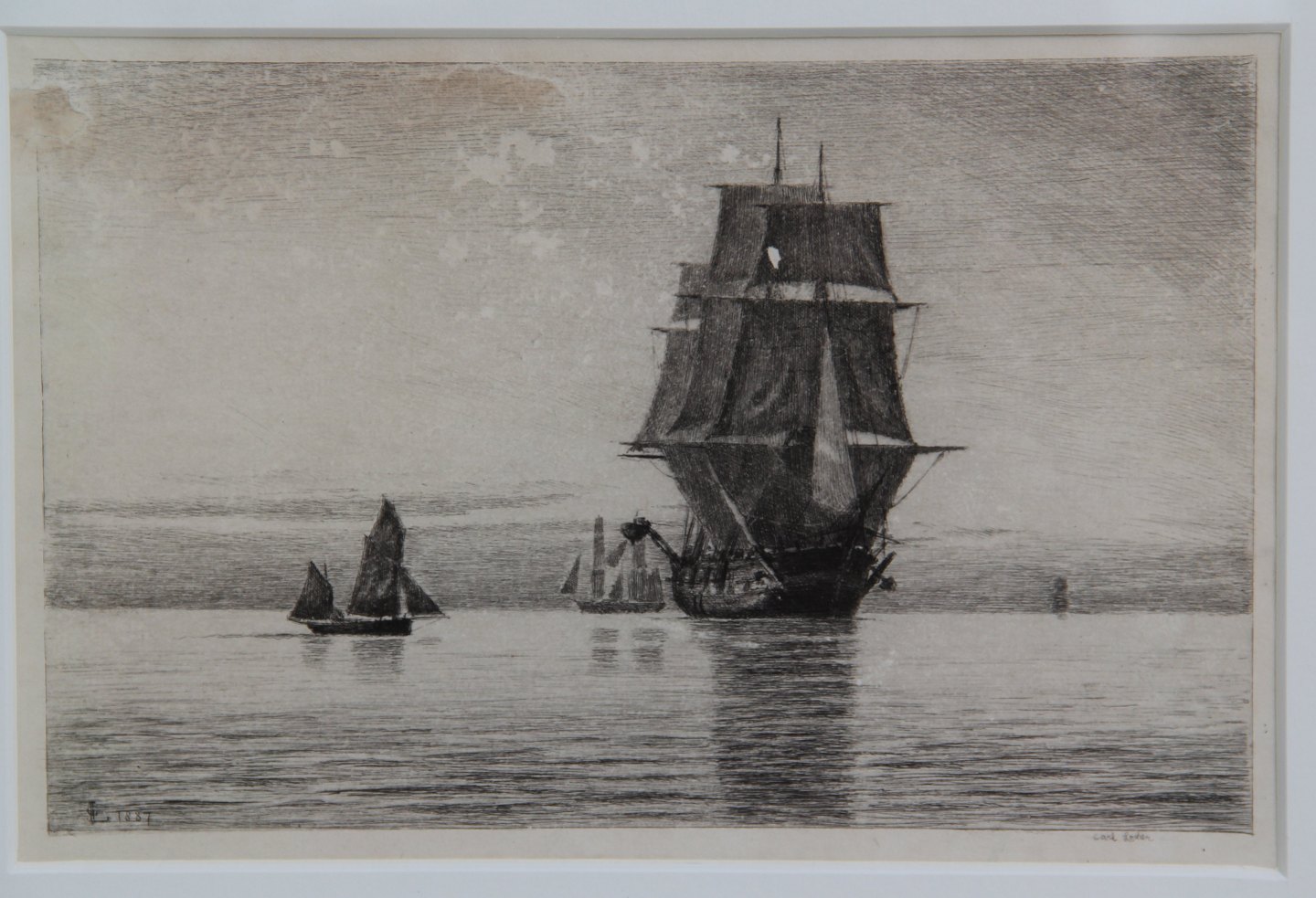 Radering: Carl Locher 1887- 27 x 35 cm Inklusiv guldramme
