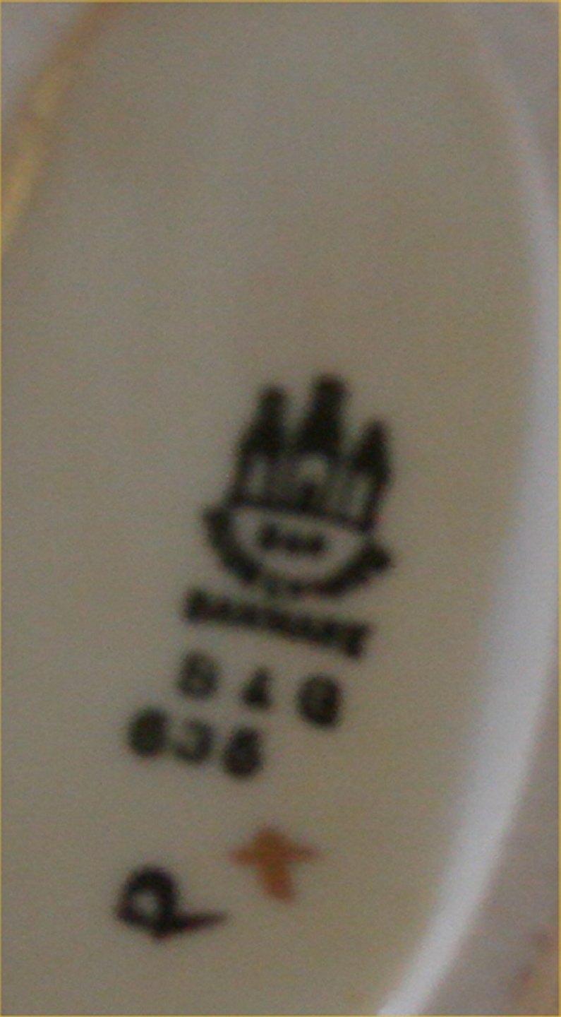 183 Tandstikbæger ovalt 7 cm (369) Absalon B&G Bing & Grøndahl B&G Absalon: Creme porcelæn, rød og hvid frugtblomst og guldkant, form 635