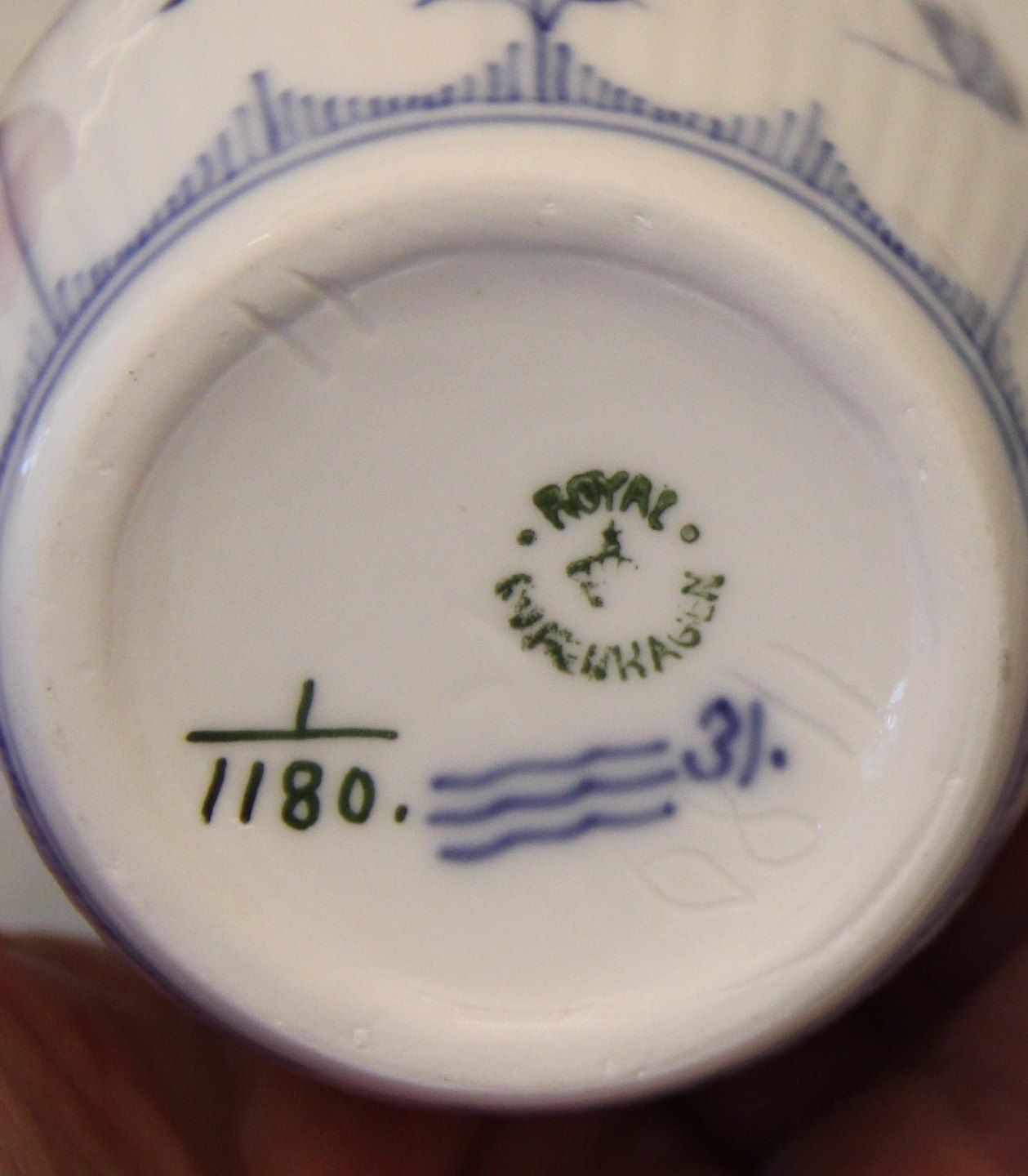 1180-1 Eddikeflaske, tynd hals Helblonde 13 cm Kongelig Dansk Porcelæn Musselmalet Helblonde