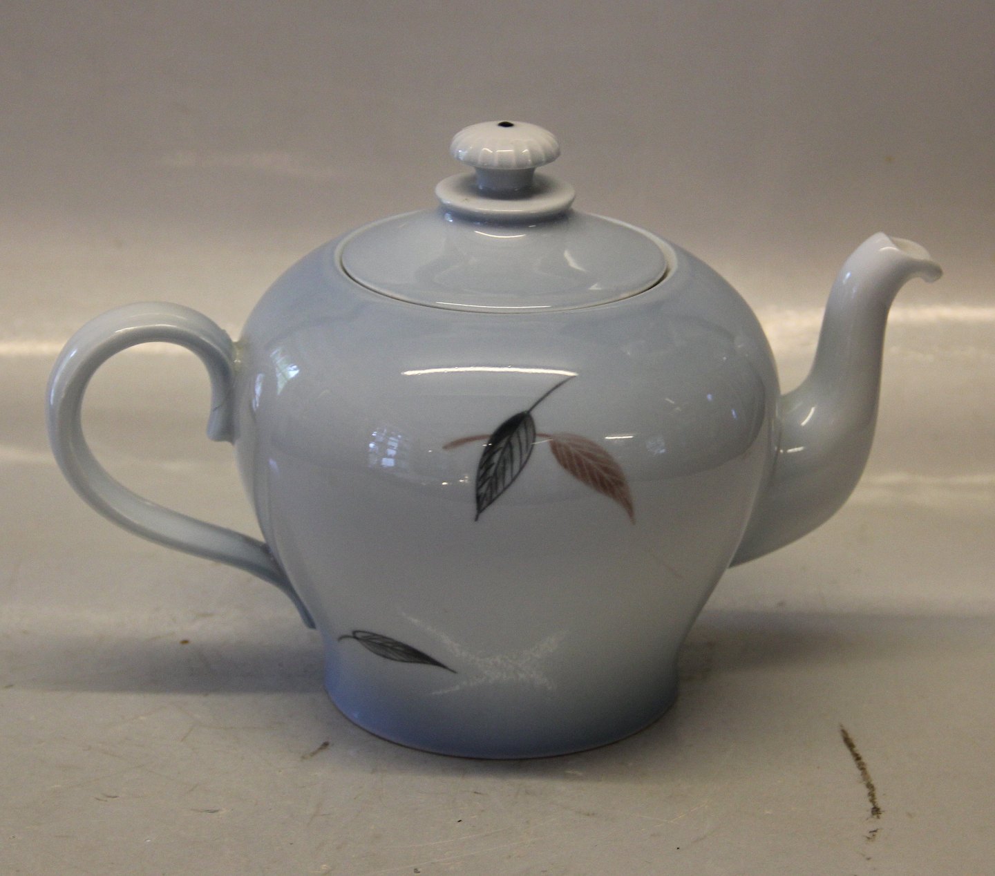 092 Tekande, (mellem) 7,5 dl  (654) Bing & Grøndahl Løvfald - efterårsblade på blåt stel fin og hel stand Falling Leaves