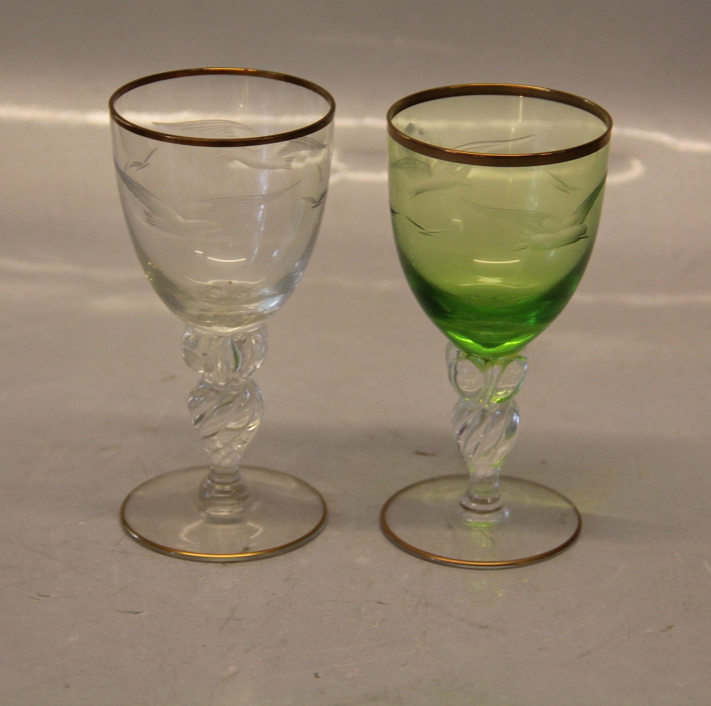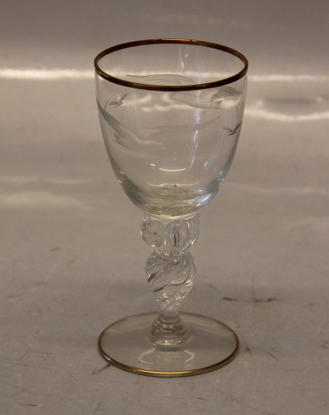 Mågeglas Lyngby glasservicce - drikkeglas med guldkant og slebne måger - slebet glas
