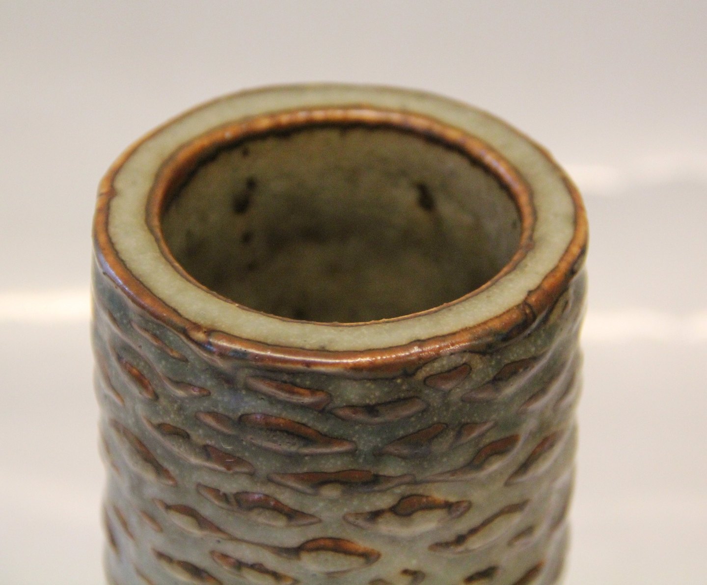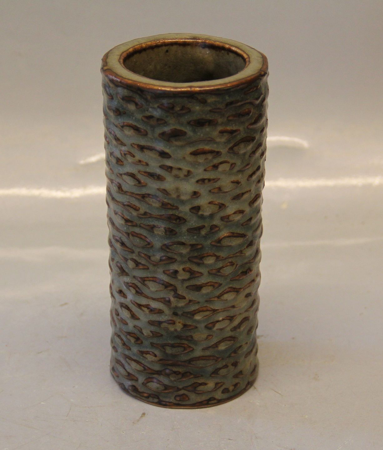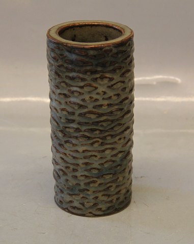 Kongelig Dansk Stentøjsvase Saltovase i Cylindrisk, vertikalt knopret i relief 17 x 8 cm
