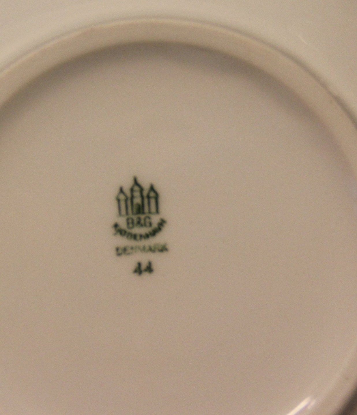 Marstrand B&G porcelæn Hvidt porcelæn, antik græsk kantet guldbort på grøn kant