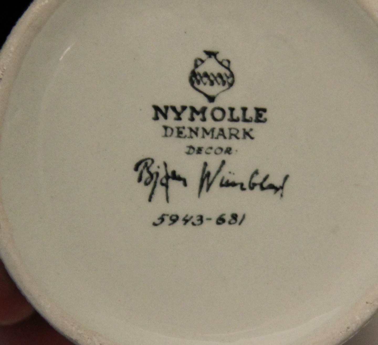 Beskrivelse: 5943-681 Nymølle, sort, rund lågkrukke 9.5 cm 26 - 6 - 1962 Bjørn Wiinblad Nymølle Denmark, keramik og fajance