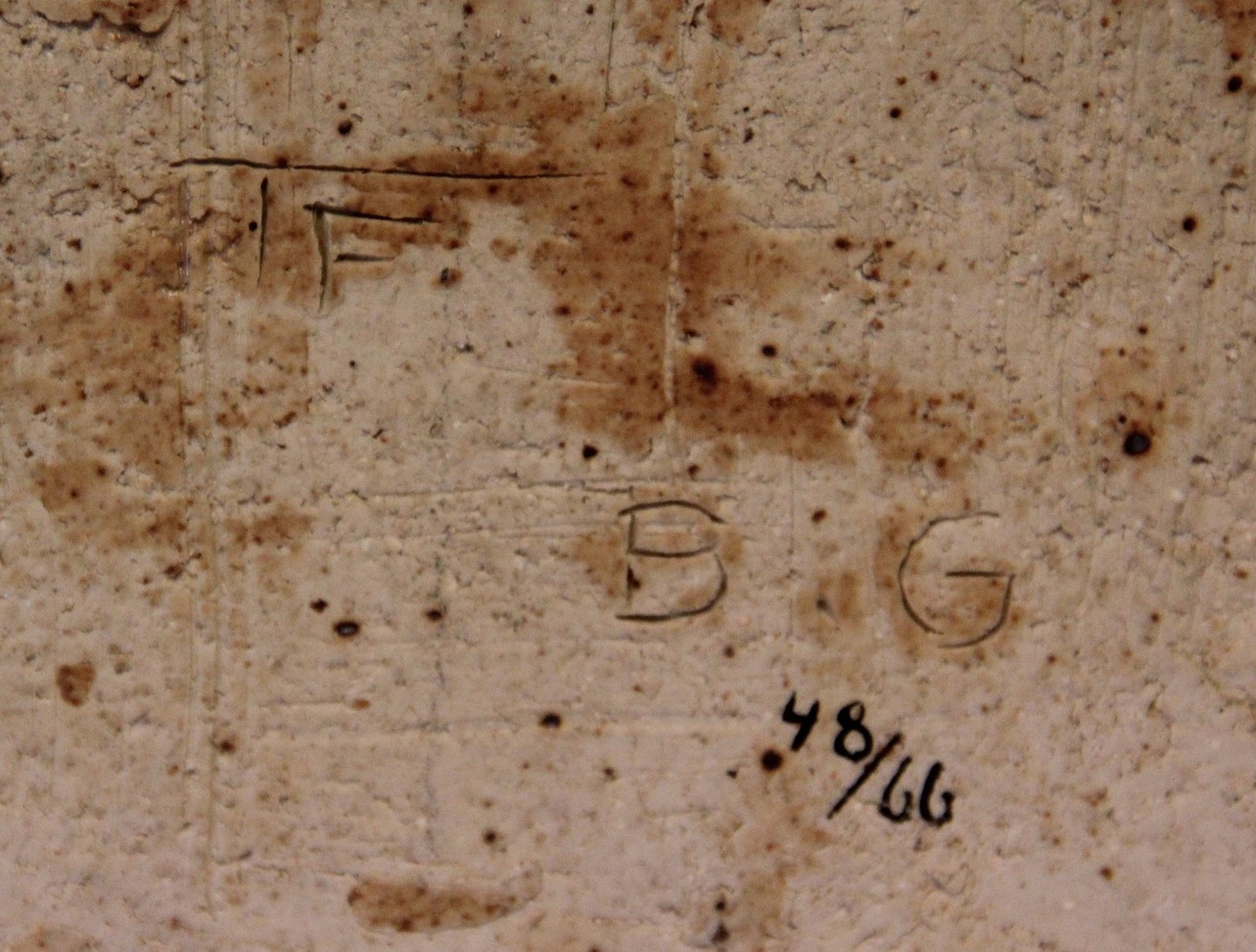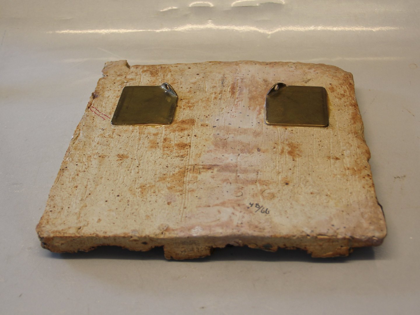Beskrivelse: Bing & Grøndahl stentøj B&G 48-66 Abstrakt Relief ca 25 x 25 cm Signed TF Tut Fog I fin og hel stand Bing & Groendahl