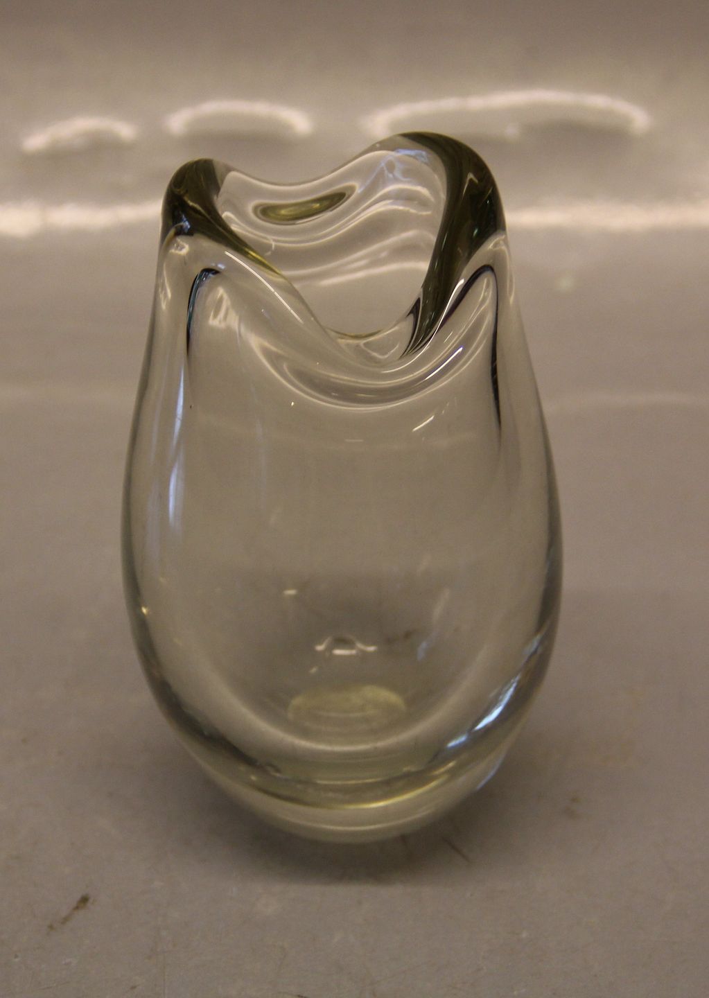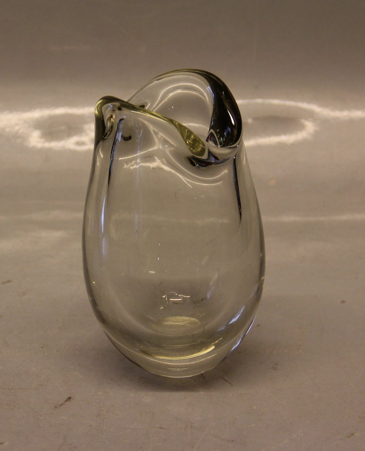 Beskrivelse: Holmegaard Torskemund Vase 13 cm Per Lütken 1964 618 gr I fin stand grønligt skær røgfarvet