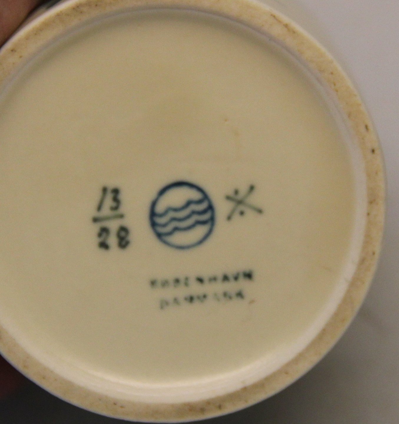 028-13 Kgl. Rund Vase 6.5 x 6.5 cm Pære og kirsebær Royal Copenhagen Aluminia Mat Porcelæn (Blødt porcelæn med mat glasur) Design samarbejde mellem Olaf Mathiesen og Nils Thorsson 1927-1932