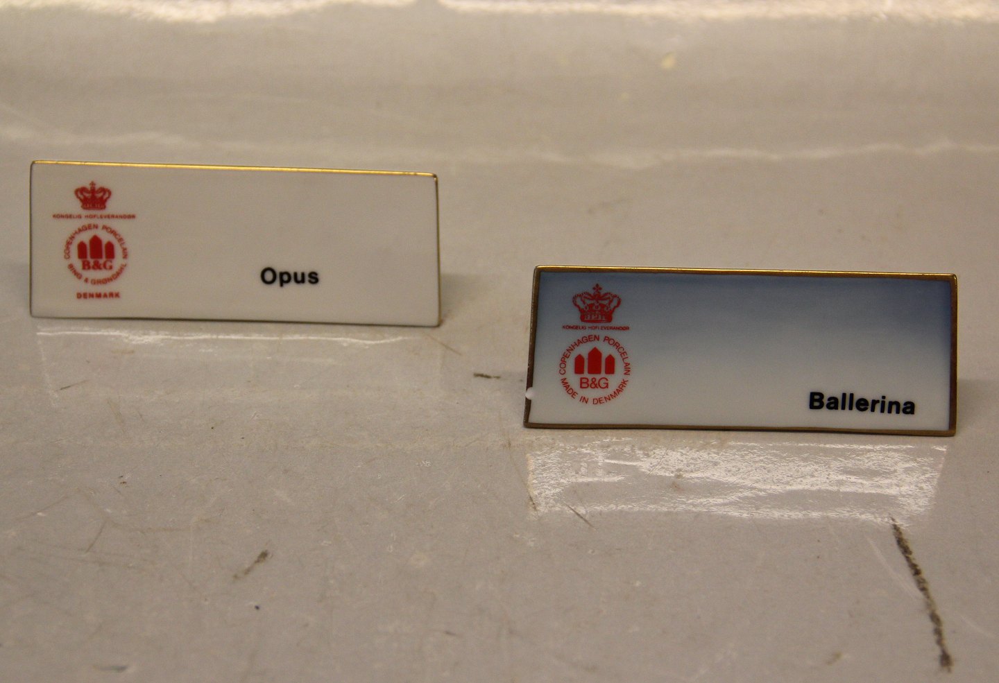 Beskrivelse: Opus Hvid Bing & Grøndahl B&G forhandler skilte for Opus Ca 4 x 10 cm I fin og hel stand.