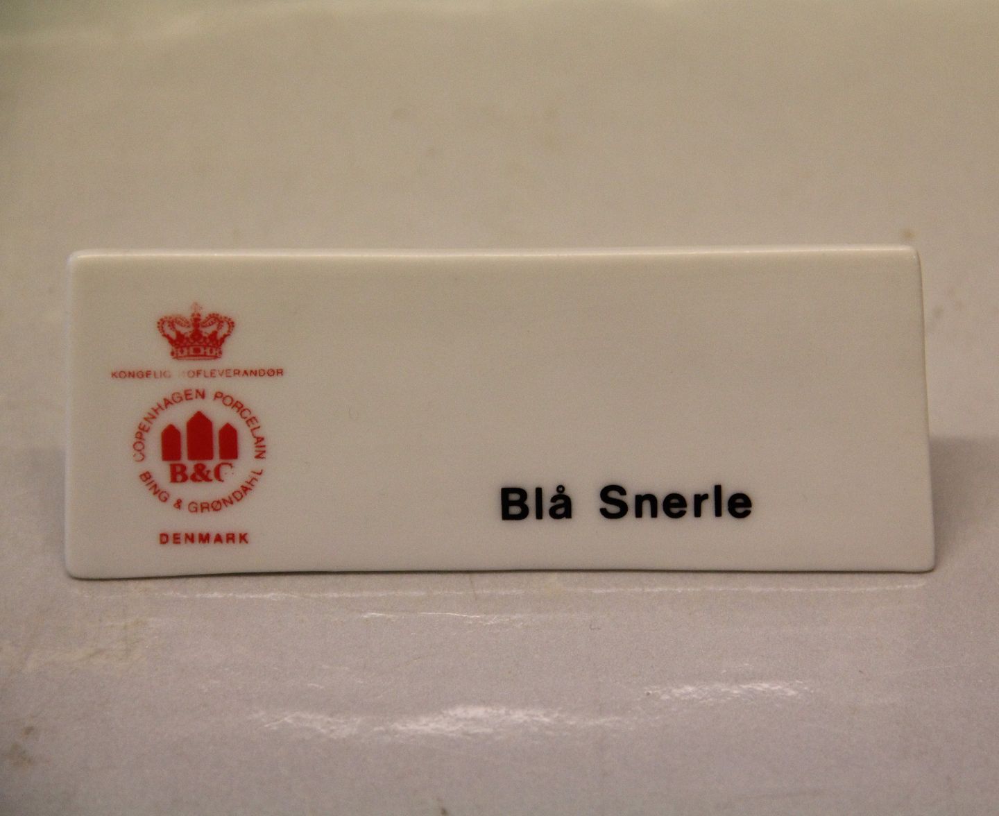 Bing & Grøndahl B&G forhandler skilte for Blå Snerle Ca 4 x 10 cm I fin og hel stand.