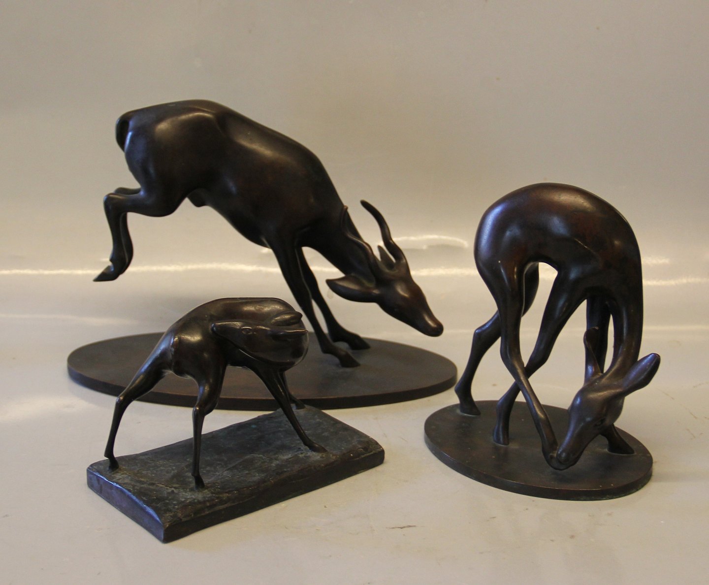 Bronze Antilope 14 x 16.5 cm på fod Signeret JG