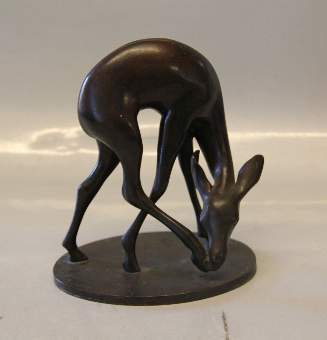Bronze Antilope 14 x 16.5 cm på fod Signeret JG
