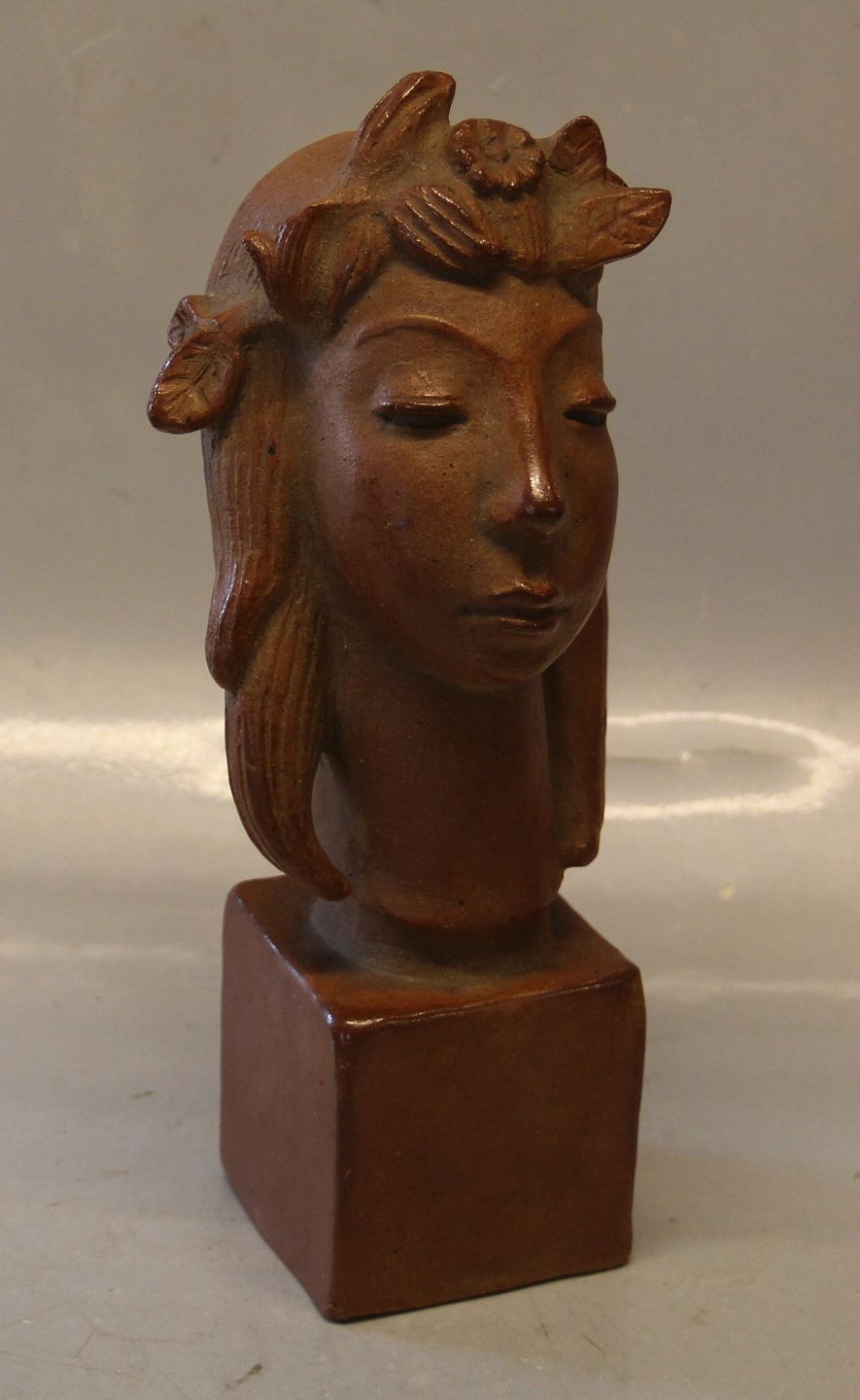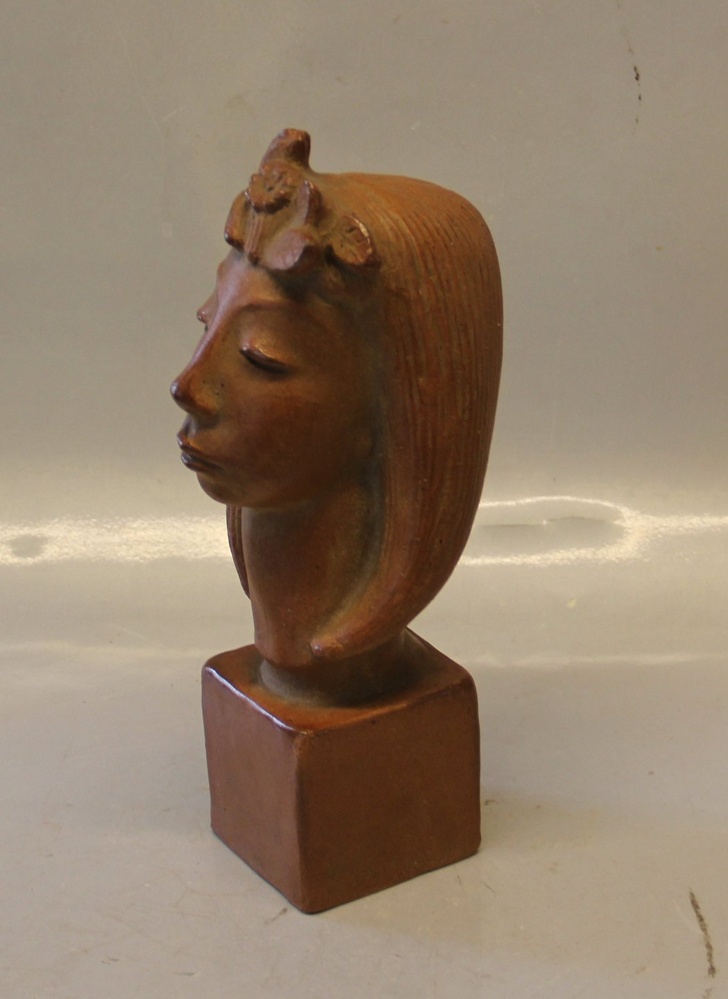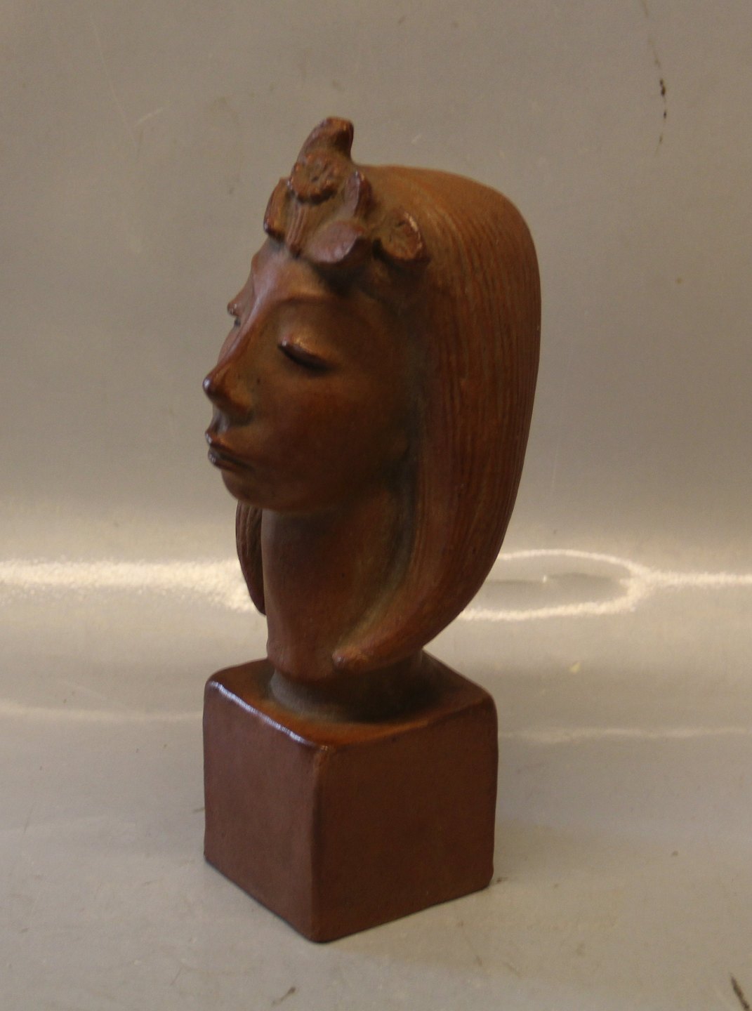 L. Hjorth Kvindehoved på firkantet fod 26 cm Helge Christoffersen