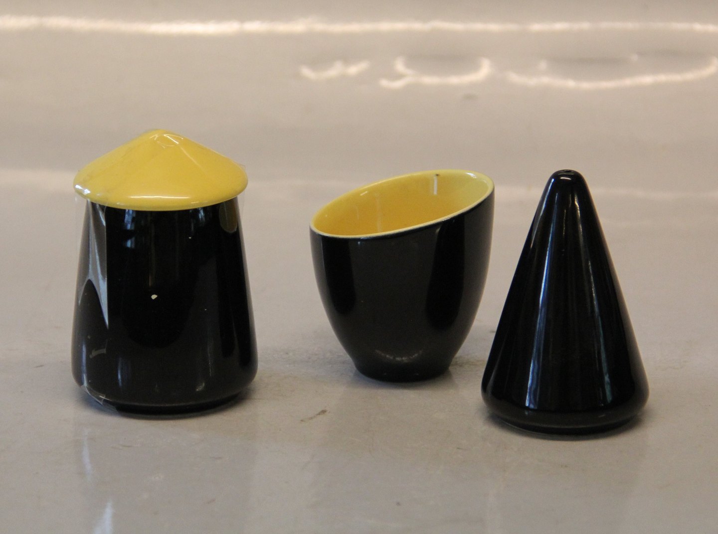 Krukke 5.5 cm fingersalt - saltkar Congo Kronjyden retrostel i gult og sort. l I fin og hel stand.