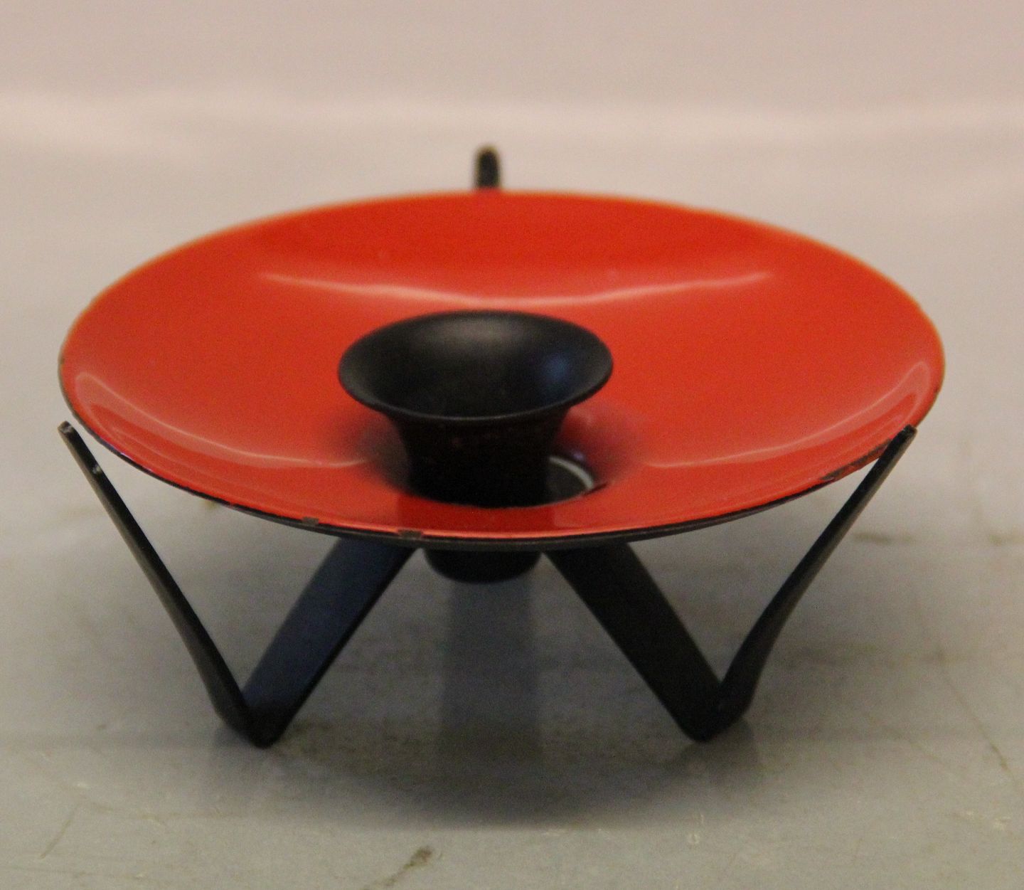 Retro Rød og sort Krenit emalje lysestage 4 x 9.5 cm