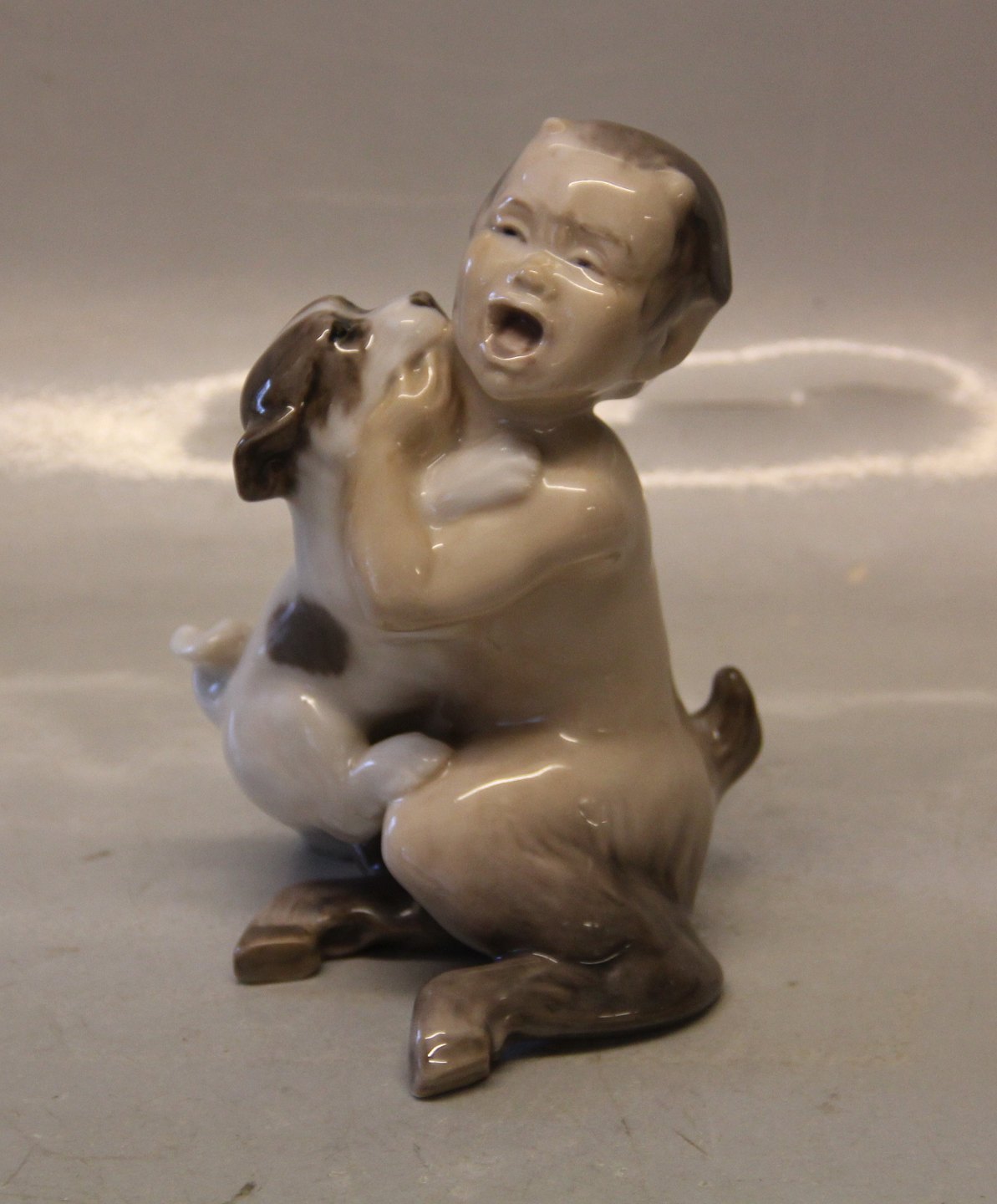 Beskrivelse: 2823 Kgl. Pan med hundehvalp KK 1927 15 x 10 cm 1927 fra Royal Copenhagen I hel og fin stand Knud Kyhn